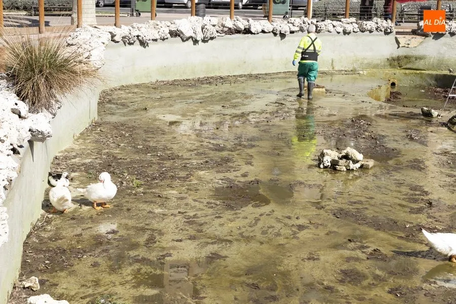 De igual modo, esta semana, concretamente el martes día 23 de marzo, estos mismos trabajos se llevaban a cabo en el estanque del Parque de los Jesuitas.