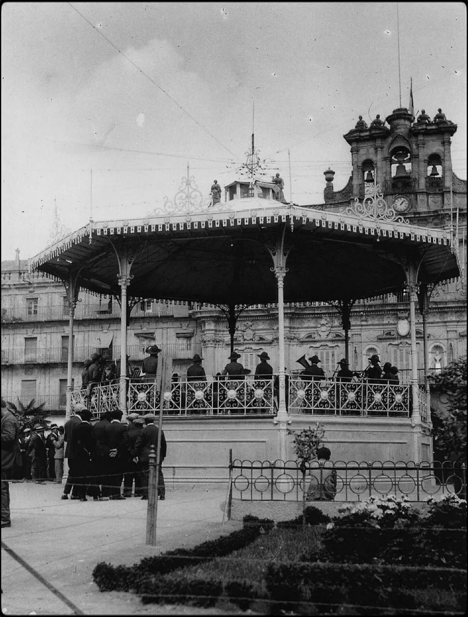 Para los salmantinos de talante más moderno, el templete del centro de la Plaza Mayor fue durante los años veinte un anacrónico recuerdo de otros tiempos. Ridiculizado a lo largo de más de diez años, sobrevivía como baluarte de ritos antiguos, pertenecientes a una época en la que las bandas amenizaban una Plaza más tranquila y provinciana.