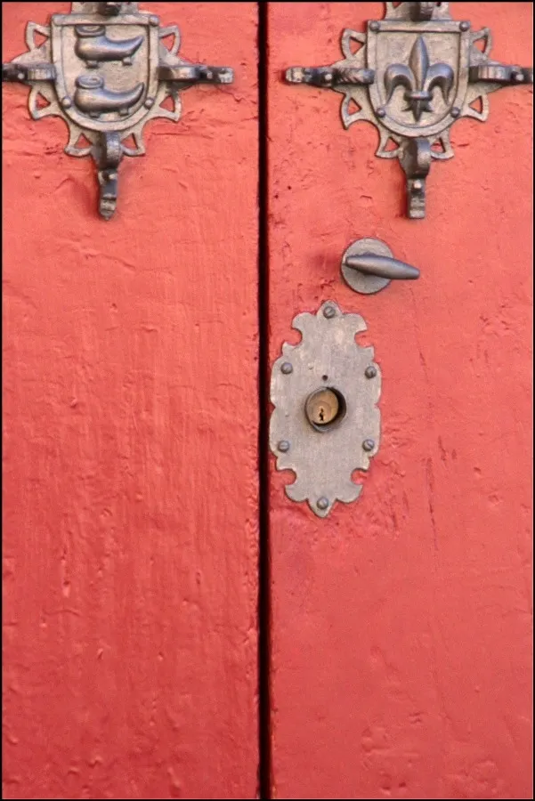 Sabe Amador recorrer lo grande y lo pequeño. Buscar con su objetivo los cielos y el detalle sublime de nuestros paseos. Su mirada se enzarza en las deliciosas bocallaves de las casas solariegas, aquellas que precisaron de un maestro herrero para golpear la chapa de hierro que se hizo figura para proteger la puerta. Es el adorno geométrico que cobija el agujero negro de la cerradura, ese que se inserta en la madera para cubrir el roce, que se hace figura geométrica, sol y luna, flor y jarro, animal y criatura para cuidar la entrada que nos separa de lo ajeno. Y alrededor del hueco donde metemos la llave de la intimidad, alzan el vuelo quieto las aves, los gallos, los caballos, las sierpes, la zoología simbólica del adorno popular que luce en las puertas de dos hojas de nuestros pueblos, las puertas historiadas de las casas solariegas de nuestras ciudades. Es la veta popular en la belleza de la puerta, trazada con el cuidado del carpintero y del herrero, golpe a golpe de gubia y yunque.