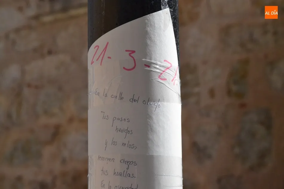 Los paseos callejeros por Ciudad Rodrigo tienen desde hace unos días un pequeño aliciente más: localizar (y leer) las poesías que se han colocado en numerosas farolas de la ciudad. En concreto, se pueden ver poesías por ejemplo en la Plazuela del Conde, en la Avenida de Yurramendi (en las inmediaciones de las Puertas de Amayuelas), en la calle Lorenza Iglesias, o en la subida del Registro. Parte de estas composiciones son muy conocidas, ya que por ejemplo las de la Avenida de Yurramendi pertenecen a Gustavo Adolfo Bécquer, mientras que las otras pertenecen al poemario Con la memoria del mar en mis orillas de Acolumna S. González, quién tuvo la iniciativa de hacer este despliegue callejero de poesías ?con la ayuda de su amiga Marisol y su hija Alba- con motivo del Día Mundial de la Poesía que apareció en el calendario el pasado domingo. En lo que respecta al poemario, que cuenta con fotografías de Lázaro Hernández Becerro, nació durante el confinamiento y vio la luz gracias al mecenazgo de distintas personas.