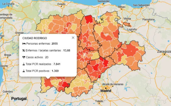 En concreto, no ha habido ningún positivo en los 54 municipios de la comarca de Ciudad Rodrigo entre el 19 y el 28 de marzo, al igual que tampoco los hubo entre el 6 y el 15 de marzo. En la jornada del 16 de marzo, apareció un positivo en la Zona de Fuentes de Oñoro (sin que se sepa a qué municipio correspondía), mientras que el 18 de marzo apareció otro en la localidad de La Fuente de San Esteban, que es el último hasta la fecha. Hay que recordar que el 8 de marzo sí se registró un positivo en la Zona Básica de La Alberca, pero fue en una localidad que no pertenece a la comarca mirobrigense.