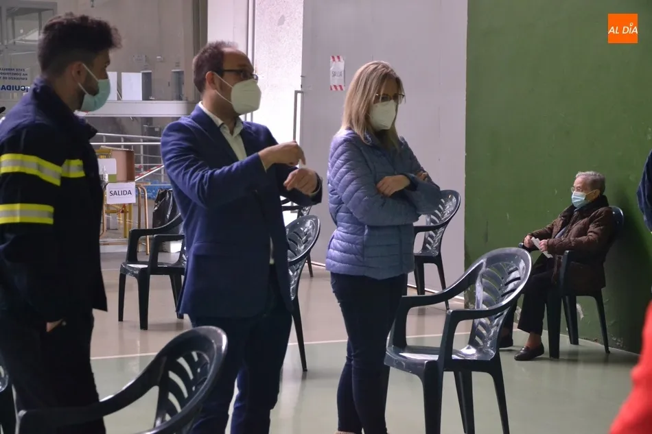 El Pabellón Eladio Jiménez de Ciudad Rodrigo acogió durante la mañana del Lunes Santo una nueva jornada de vacunación masiva contra el coronavirus, a la que se acercaron el alcalde Marcos Iglesias y la teniente de alcalde Beatriz Jorge Carpio para realizar una visita, en la cual aprovecharon para ?felicitar? a todos los involucrados en estas sesiones, según explicó el alcalde en declaraciones efectuadas a los medios de comunicación junto a Manuel López del Val, enfermero del Centro de Salud de Ciudad Rodrigo, y responsable de la vacunación en Miróbriga.