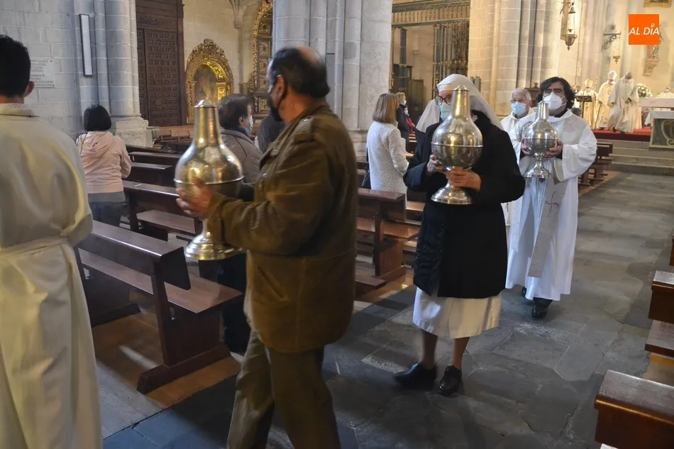 La celebración de la mañana del Martes Santo, a la que asistió presencialmente un notable número de fieles (entre ellos hermanas de vida consagrada y algunos turistas), se cerró con el canto de la Salve. Ahora, ese Santo Crisma y los óleos se los llevarán los sacerdotes para distribuirlos por todas las parroquias diocesanas. Los cultos en la Catedral de Santa María con motivo de la Semana Santa 2021 continuarán el Jueves Santo con la oración de Laudes por la mañana (10.30 horas), y la Misa de la Cena del Señor por la tarde (18.00 horas).