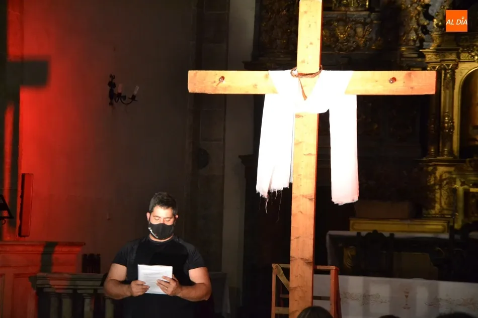 En este sentido, ese acto incluyó la recreación de escenas y el relato de vivencias acaecidas en la historia de las representaciones de La Pasión, todo ello guiado por el alma mater de la misma desde sus inicios, el sacerdote Juan Carlos Sánchez, quién explicó que este acto de ?recuerdo? a La Pasión ante la imposibilidad de representarla con normalidad por culpa de la pandemia del coronavirus tenía ?un poco de improvisación, pero la música nos va meter en ambiente?.