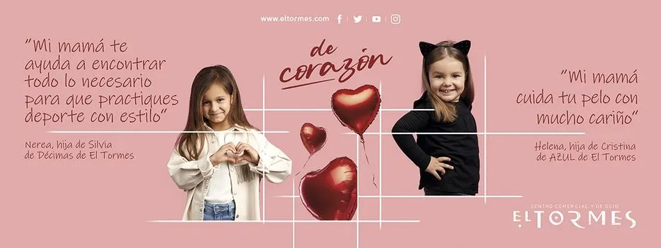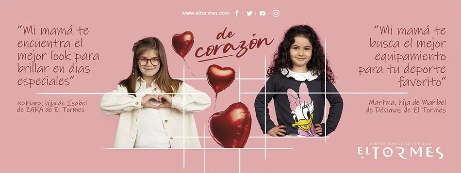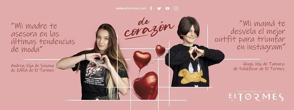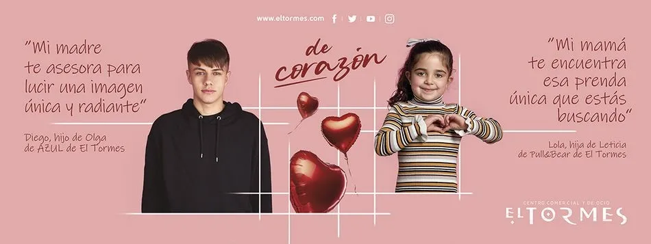 En estos anuncios, los hijos de los trabajadores muestran con sus manos un corazón con un mensaje donde informan de alguna de las tareas que desarrollan sus padres. "Mi madre te asesora para lucir una imagen única y radiante", "Mi mamá te encuentra esa prenda única que estás buscando", "Mi mamá te ayuda a encontrar todo lo necesario para que practiques deporte con estilo", "Mi mamá cuida tu pelo con mucho cariño", "Mi papá elabora los postres más ricos para endulzarte el día? ... son algunos de los mensajes que se pueden leer en estos anuncios.
