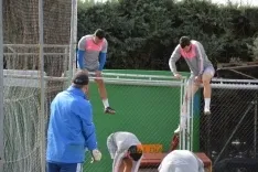 Varios futbolistas decidieron escalar la verja del campo para acceder a él al estar la puerta cerrada en el regreso al trabajo de la plantilla