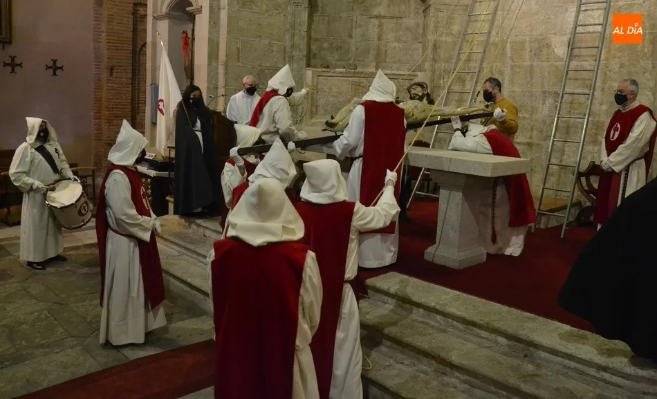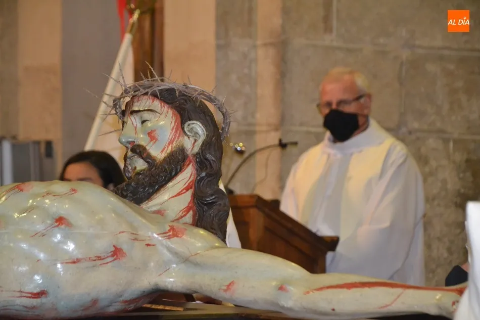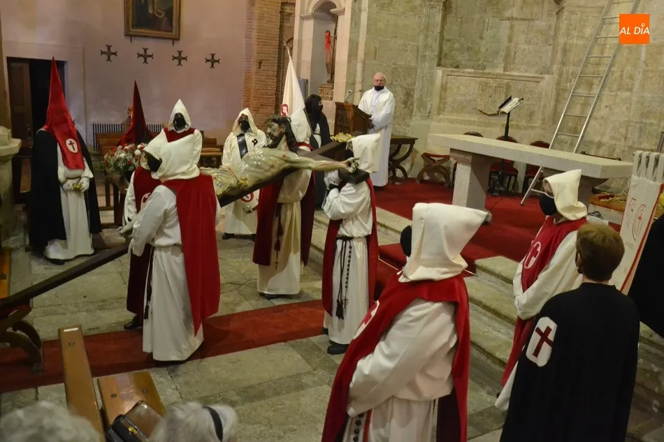 Sin embargo, la histórica imagen acabó este año por ser protagonista de la jornada del Jueves Santo con un acto especial organizado por su Hermandad, que tuvo lugar en el interior de la Iglesia de San Pedro-San Isidoro a la conclusión de la Misa de la Cena del Señor, que fue presidida por el párroco, Ángel Martín Carballo, quién también introdujo como capellán de la entidad el acto en sí, ?sencillo pero intenso? ?según él mismo lo definió-, que fue retransmitido en directo en su página web ante las limitaciones de aforo.