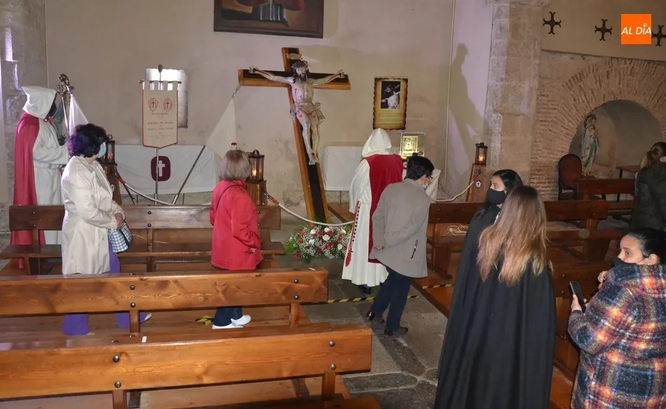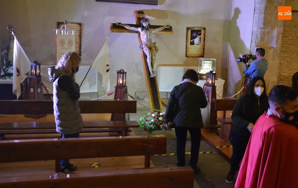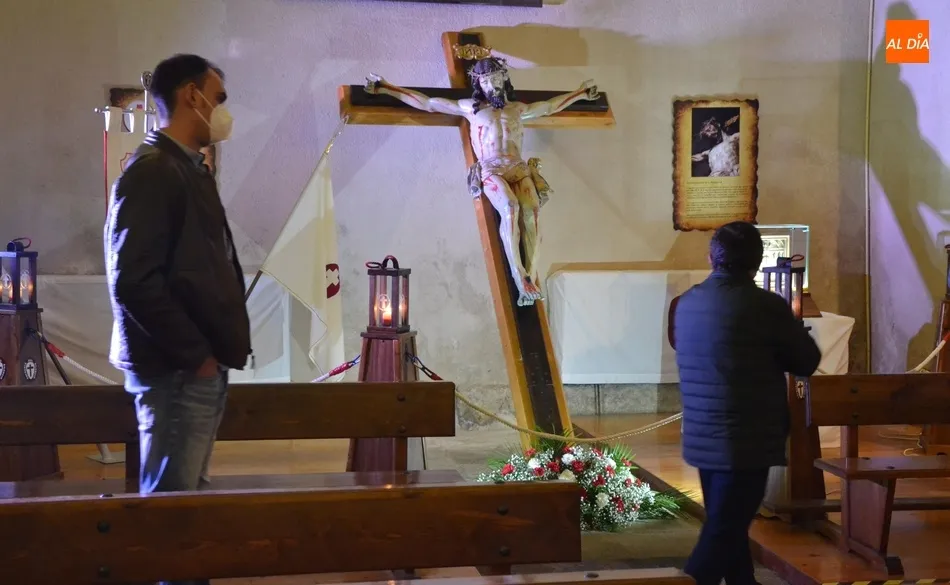 A partir de ahí, todos aquellos que quisieron pudieron pasar a contemplar de cerca el Cristo, en un recorrido marcado que comienza junto a la puerta principal del templo (en la que se ha colocado una lona de la Cofradía), en una zona delimitada con vallas, y que tiene como final la salida por la puerta trasera de la Iglesia, que habitualmente permanece cerrada. Este Viernes Santo se podrá de nuevo visitar el Cristo del Silencio de 11.00 a 13.00 horas.