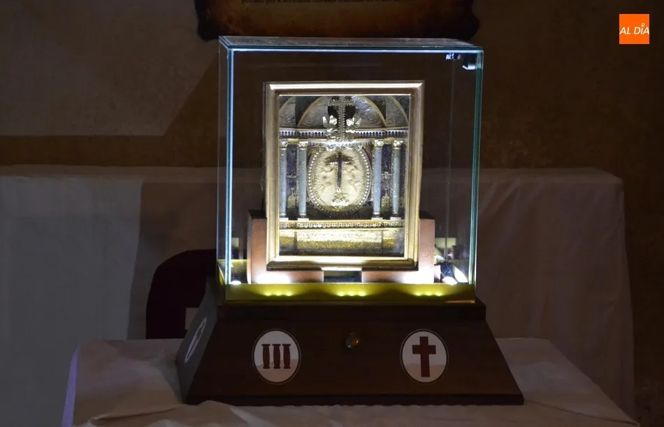 Una vez bajado, fue turno para la habitual promesa de Silencio por parte de los cofrades. Como este año no había procesión en la que cumplirla (suele hacerse en la Plazuela Cristóbal de Castillejo en los instantes previos al desfile), Ángel Martín Carballo animó a ?prometer tener algún momento de silencio estos días para contemplar y hablar con la imagen de Jesús?. Tras ello, la imagen fue llevada a la parte trasera del templo, donde se descubrió el Lignum Crucis (la reliquia de la Cruz de Cristo) que la Cofradía procesionará ?cuando se pueda- en la carroza del Cristo del Silencio. Este Lignum Crucis ha sido introducido en una urna.