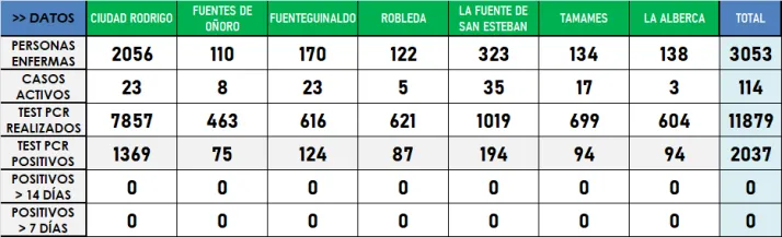 Más allá de la Zona de Tamames, llevan aún más tiempo sin sumar positivos las zonas básicas de Fuenteguinaldo y Robleda. Asimismo, la Zona Básica de Salud de Ciudad Rodrigo tampoco ha registrado ningún caso nuevo este mes, aunque sus estadísticas sí sumaron un caso antiguo a lo largo de marzo.