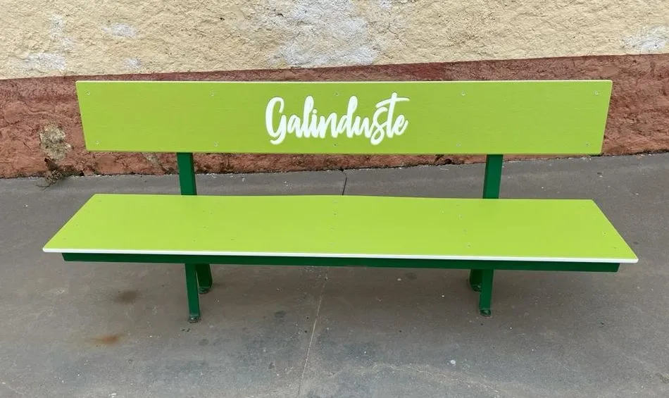 El Ayuntamiento de Galinduste ha procedido a la renovación y mejora de 22 bancos, con la incorporación de un colorido poliéster en cada uno de ellos y el nombre de la localidad. De este modo el Consistorio cambia el hierro por el poliéster mejorando estas zonas de descanso.