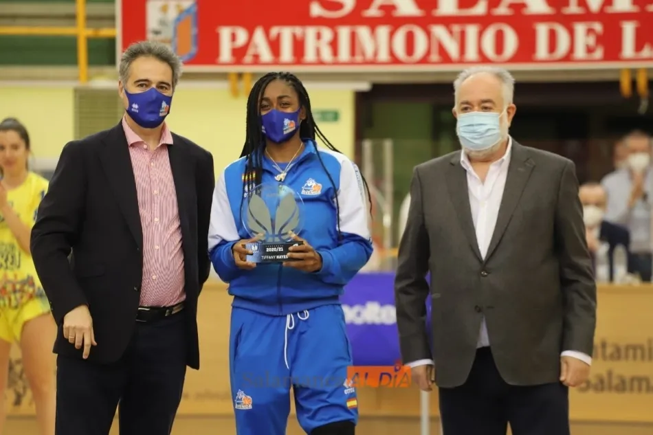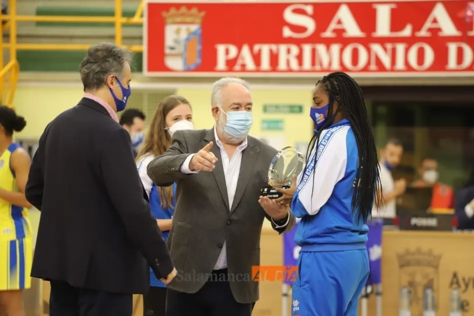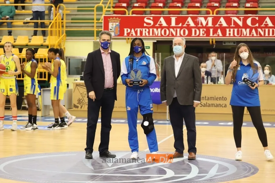 El encuentro solo tuvo un color y fue el azul. Las de Salamanca volvieron a demostrar todo su potencial y la jornada ya empezó bien con la entrega de premios a Tiffany Hayes, Katie Lou Samuelson y Maite Cazorla por su extraordinaria temporada, un hecho que no pasó inadvertido para nadie del baloncesto.