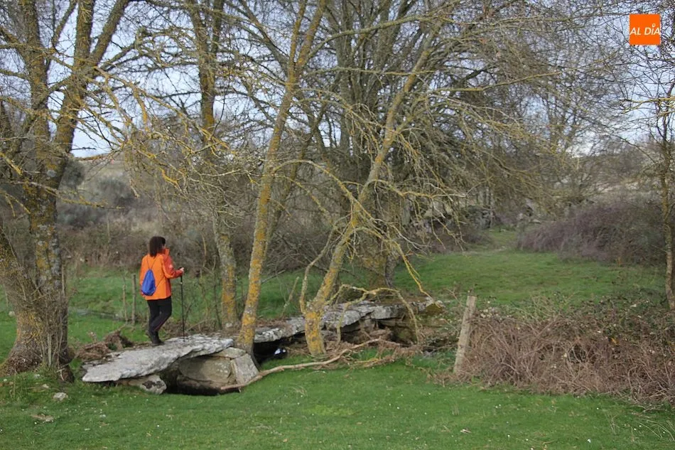 En el primer trazado propuesto, debemos atravesar el casco urbano en dirección noroeste para, tras cruzar la carretera de circunvalación, adentramos en los caminos vecinales en dirección a Villamuerto. En este punto encontraremos una mesa con información relevante sobre los aspectos más importantes en relación con los recursos naturales y agroganaderos disponibles en el municipio. Las fincas, prados y adehesados que nos acompañan son aprovechados para el cuidado del ganado y el cultivo de pastos, siendo refugio de numerosas especies típicas de animales y plantas ligadas a la dehesa salmantina. Con suerte, podremos avistar alguna de las rapaces más emblemáticas, como el milano real o el buitre leonado, así como de varias razas de vacuno, con especial atención a nuestra vaca morucha.
