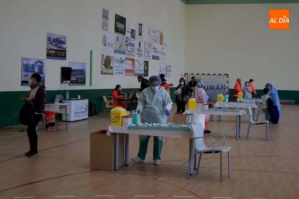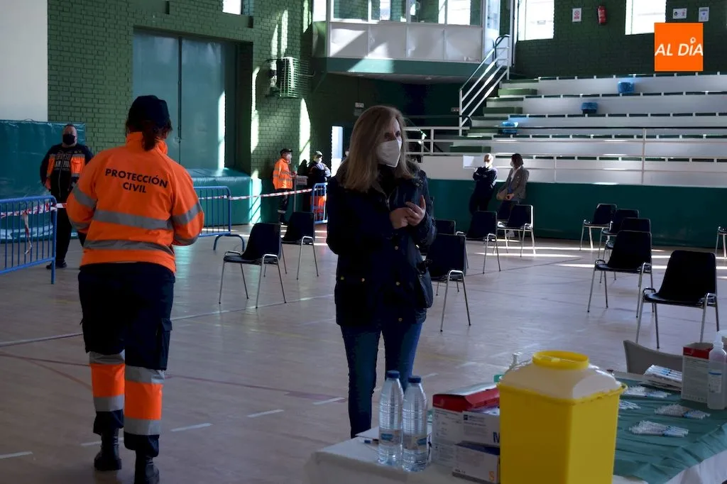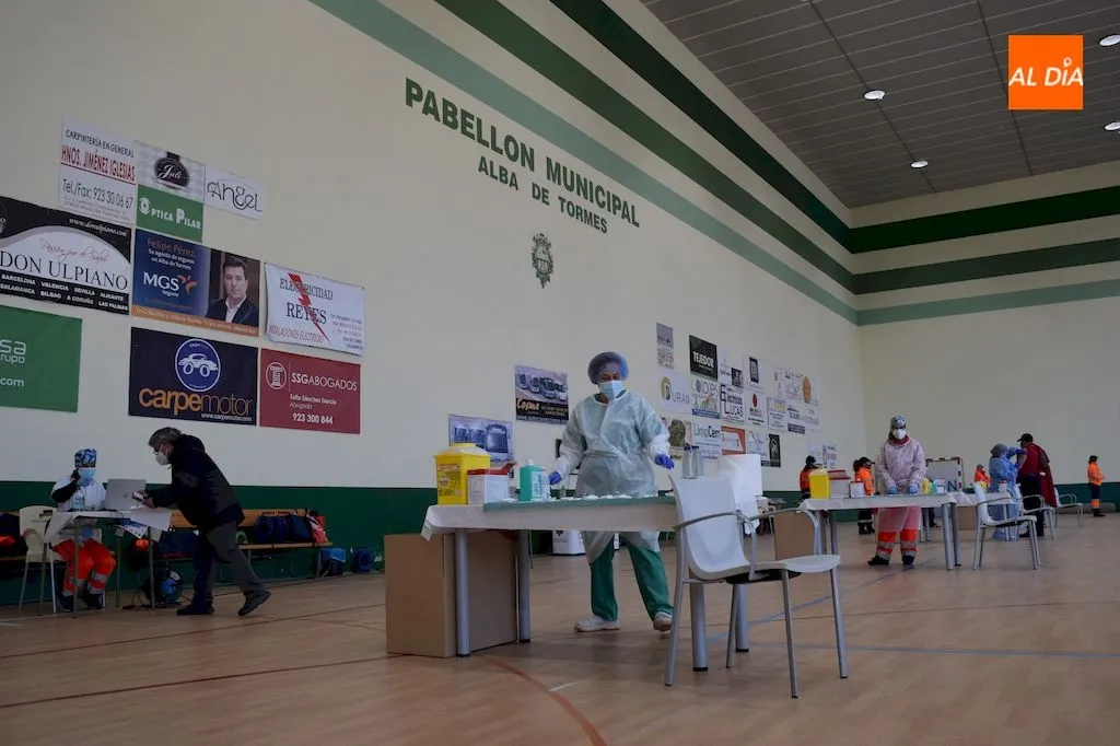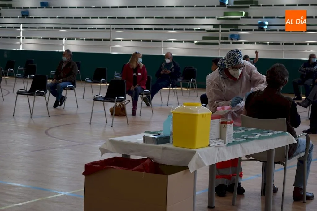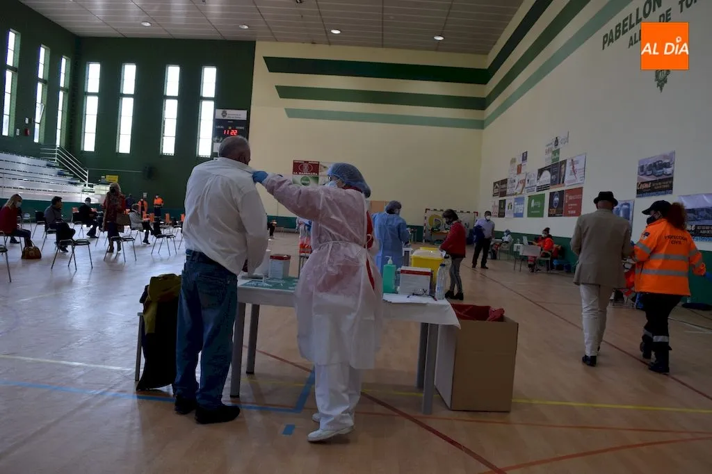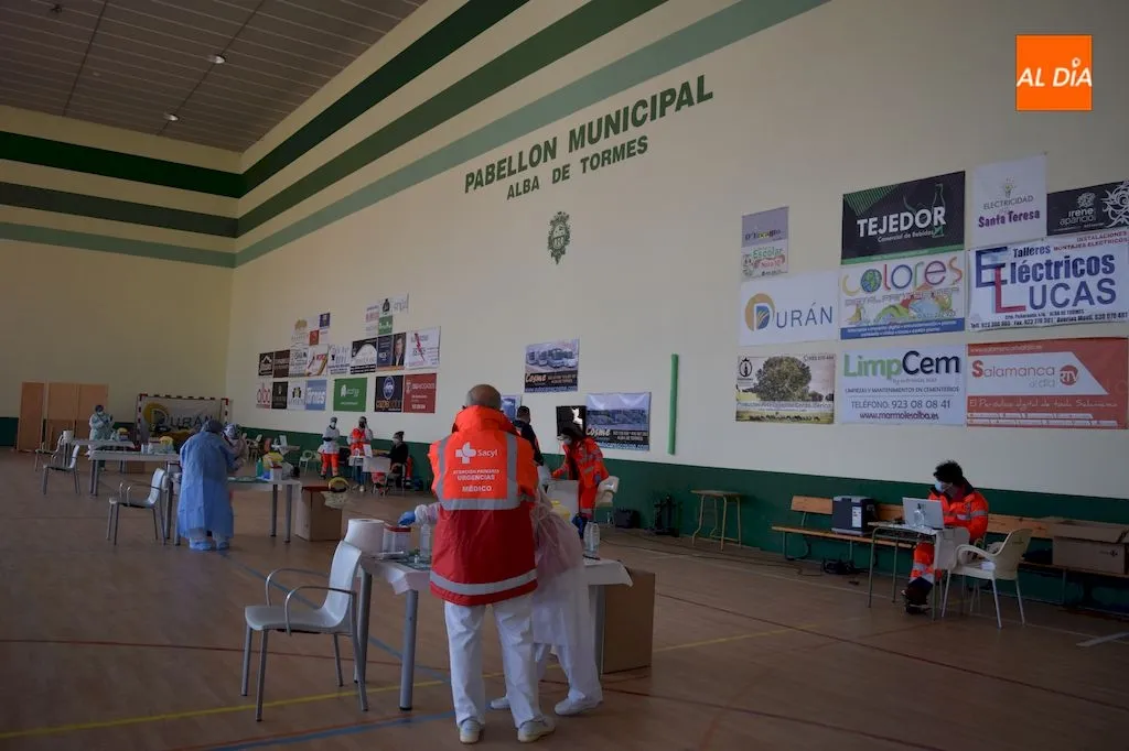 El pabellón municipal de Alba de Tormes acoge desde primera hora de la mañana de este domingo la vacunación masiva contra el coronavirus de los vecinos pertenecientes a la zona básica de salud de la villa ducal nacidos entre 1956 y 1961. A lo largo de todo este domingo están llamadas a vacunarse en Alba de Tormes más de mil personas, que se sumarán a las cerca de 800 de entre 79 y 90 años de edad que tienen previsto hacerlo el próximo miércoles.