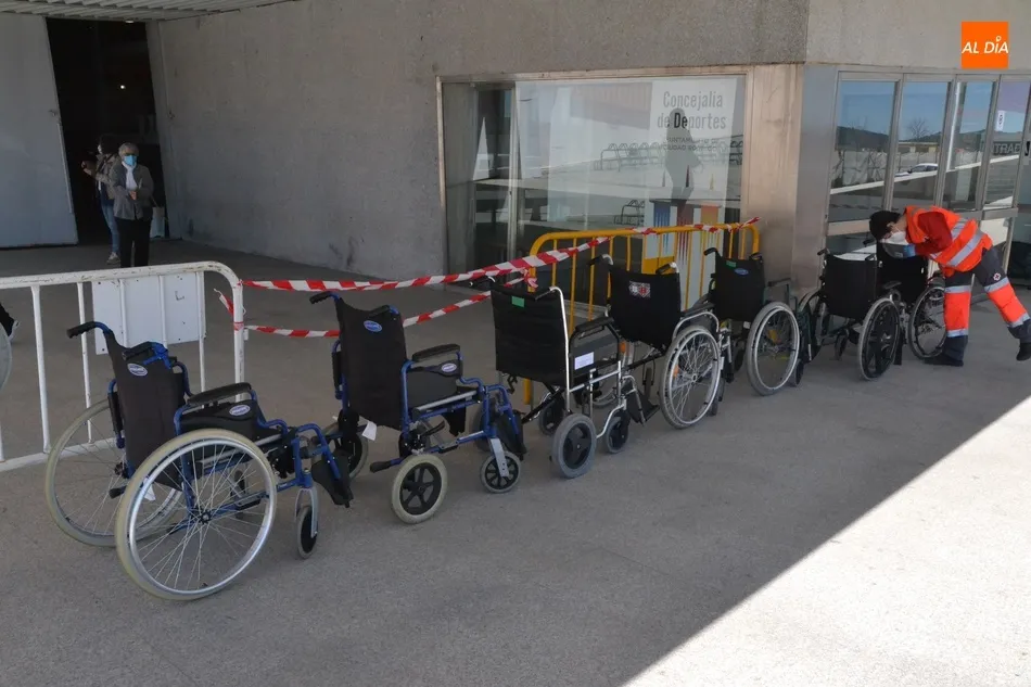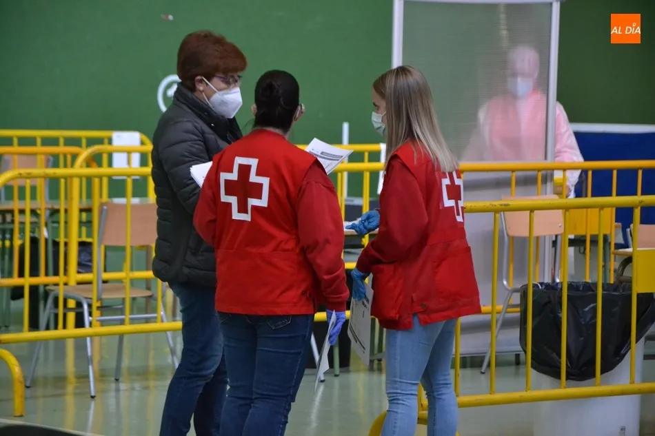 Como en todas las sesiones de vacunación que están teniendo lugar en el Pabellón Eladio Jiménez, voluntarios de Cruz Roja se sumaron al trabajo del personal sanitario y del personal municipal de mantenimiento y limpieza (que limpian las sillas nada más levantarse las personas que han estado esperando en ellas el cuarto de hora obligatorio tras recibir la vacuna). Asimismo, en el exterior se encontraban dos agentes de la Policía Local para controlar posibles problemas con la circulación.
