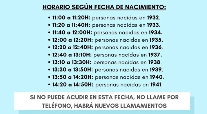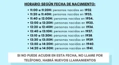 Horarios de vacunación para nacidos entre los años 1932 y 1941