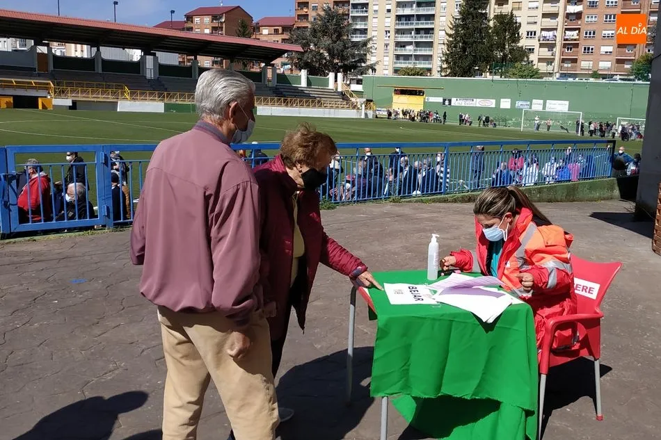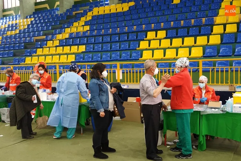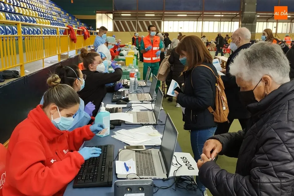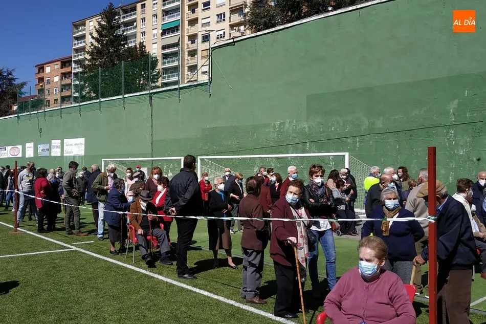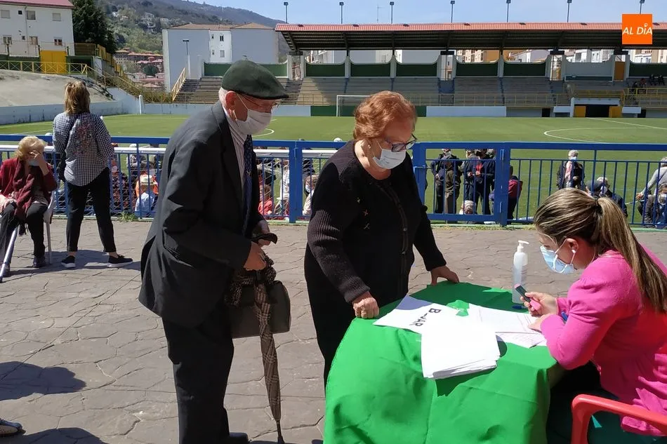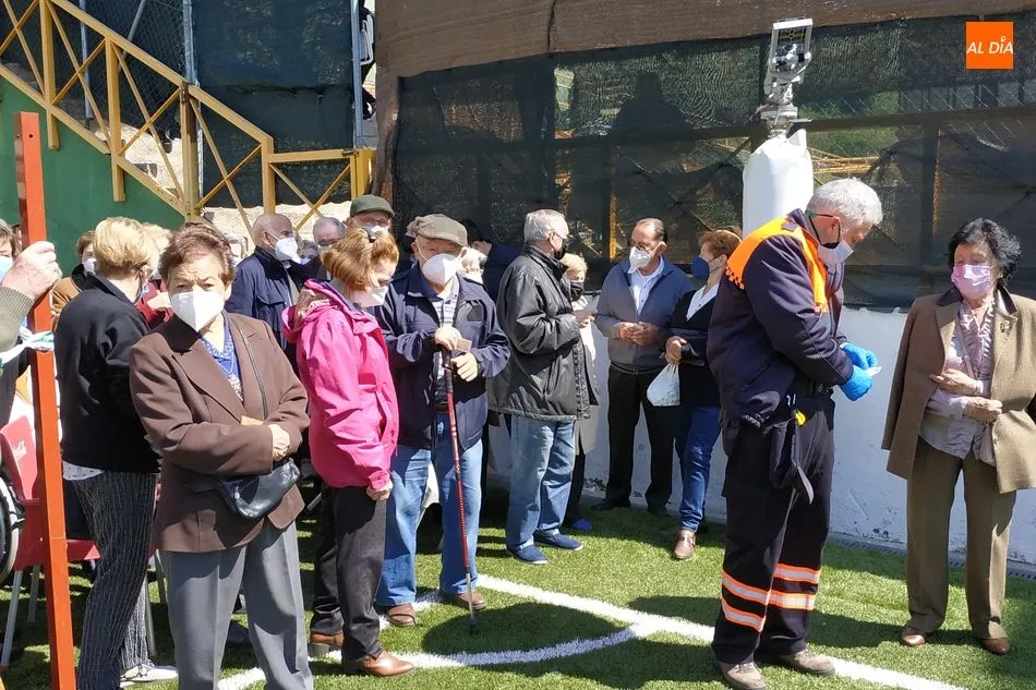 La vacunación masiva en Béjar ha comenzado en la mañana de hoy con la distribución de 1.400 dosis de la vacuna de Pfizer entre los mayores de 80 años. Grandes colas sin distancia de seguridad se han formado en el campo de fútbol de Mario Emilio para acceder al pabellón Antonio Sánchez de la Calle, donde se han establecido cinco puntos de vacunación.