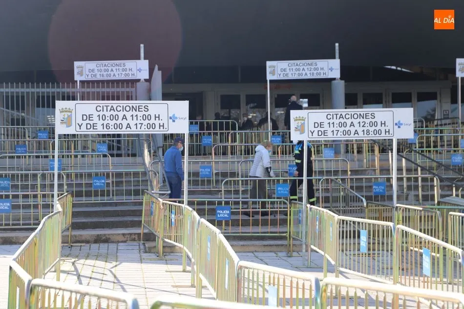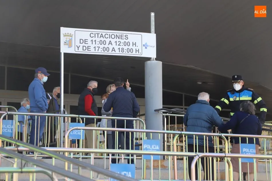 Ilusión y esperanza en la vacunación masiva que comienza en Salamanca  con una prueba piloto... | Imagen 1Mientras duren las vacunaciones, que continuarán el jueves y el viernes con los turnos indicados, por fecha de nacimiento, según se puede ver en el cartel que adjuntamos, los agentes de Policía Local velarán por el mantenimiento del orden en las entradas y salidas, en la regulación del tráfico en las inmediaciones, así como en la custodia del pabellón durante las 24 horas del día.
