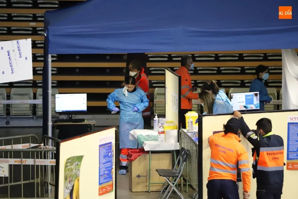 En esta fase de la estrategia de vacunación en Salamanca, en el Sánchez Paraíso, participarán 40 enfermeros, 20 auxiliares administrativos, un médico y un enfermero de emergencias y 8 responsables de Protección Civil que organizarán las entradas, salidas y circuitos. La capacidad de vacunación en este punto habilitado oscila entre las 6.000 y las 7.000 dosis diarias, supeditado a la disponibilidad de las vacunas.