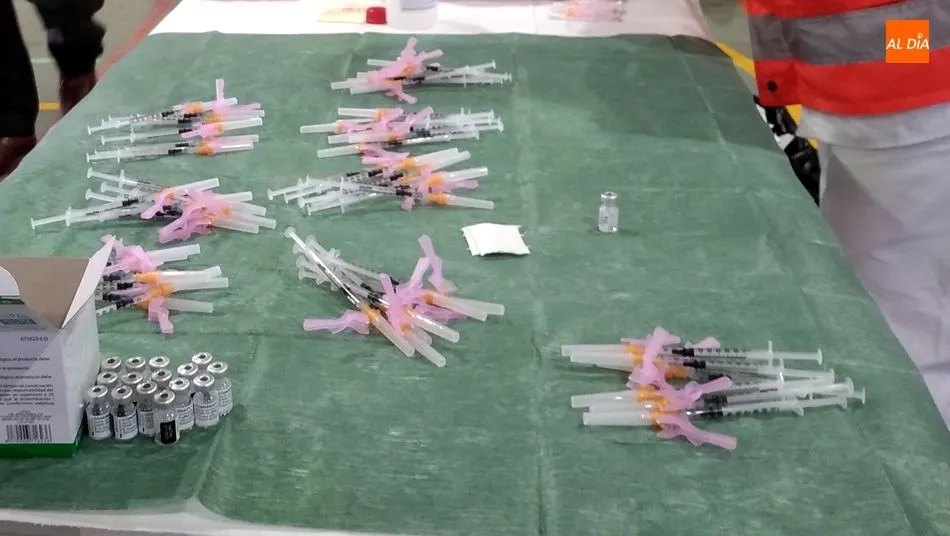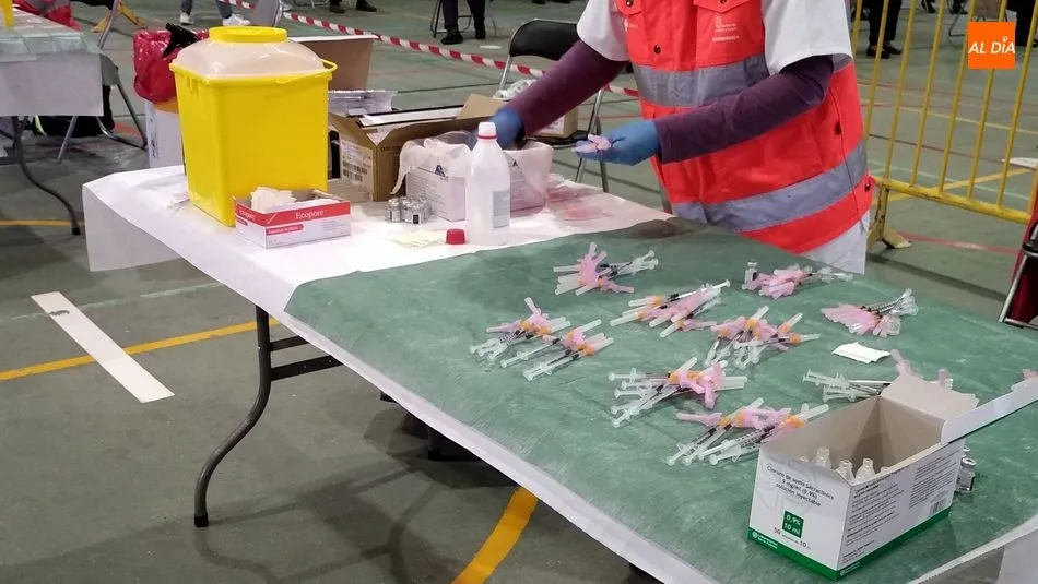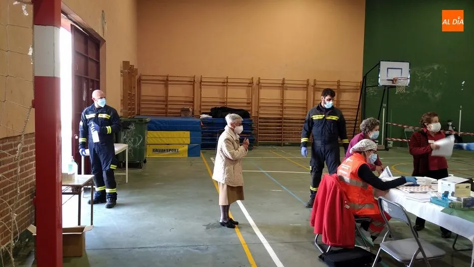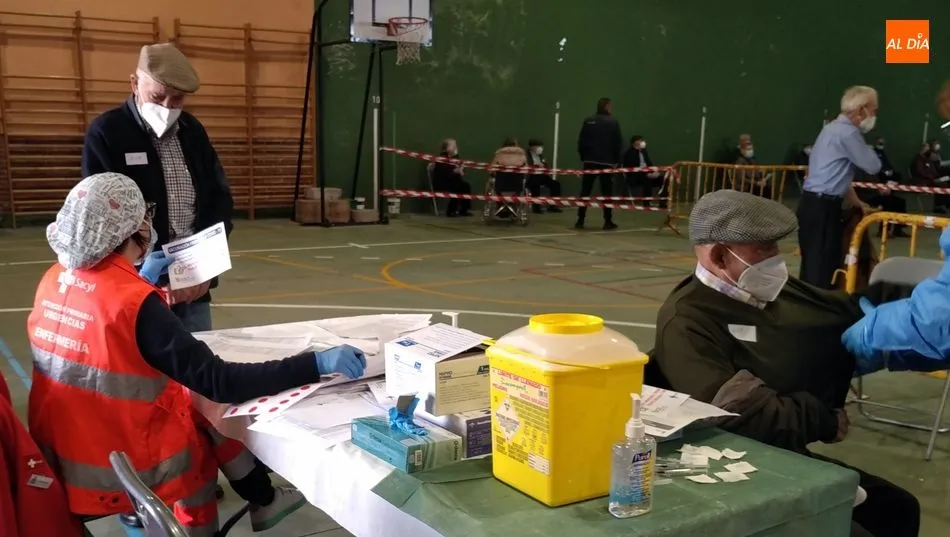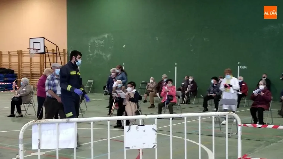 La jornada se iniciaba en torno a las 12 horas, una vez preparadas las dosis que llegaban esta misma mañana desde Salamanca. Los pacientes eran citados para entrar en el polideportivo donde, una vez identificados, recibían la inyección. A continuación pasaban al espacio habilitado con sillas para esperar durante al menos 15 minutos una posible reacción negativa de la vacuna, espera que era vigilada por las médicas y enfermeras.