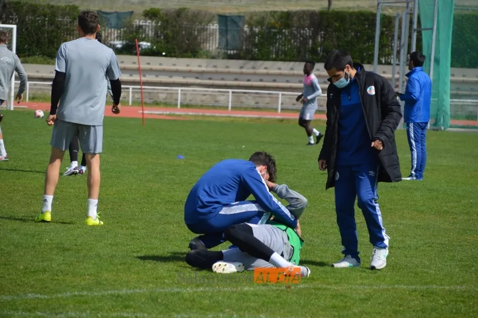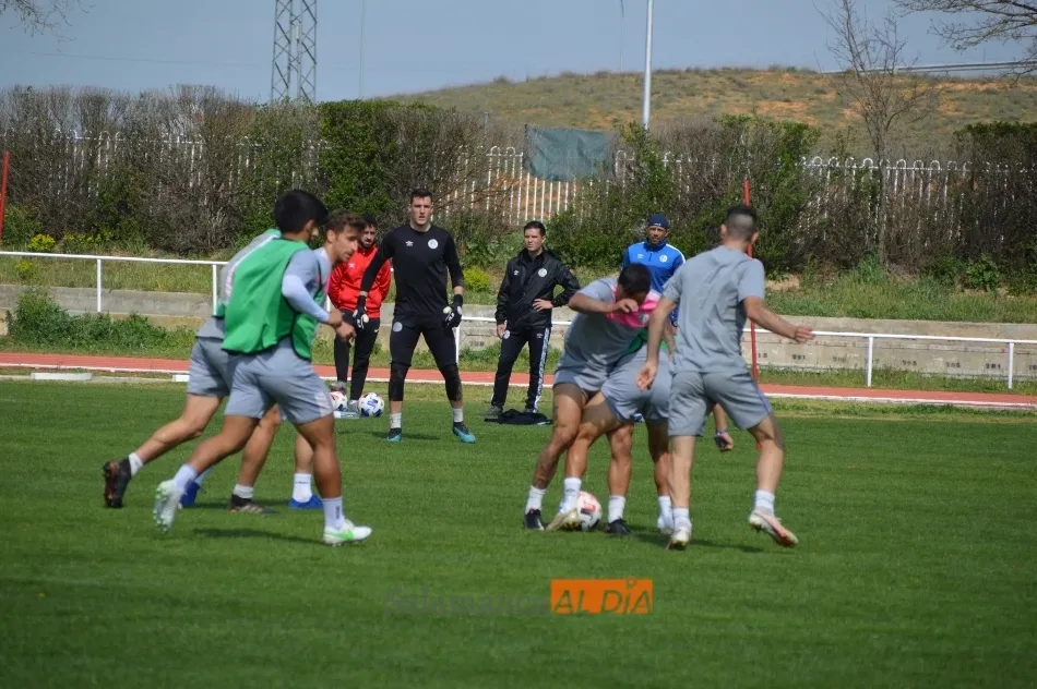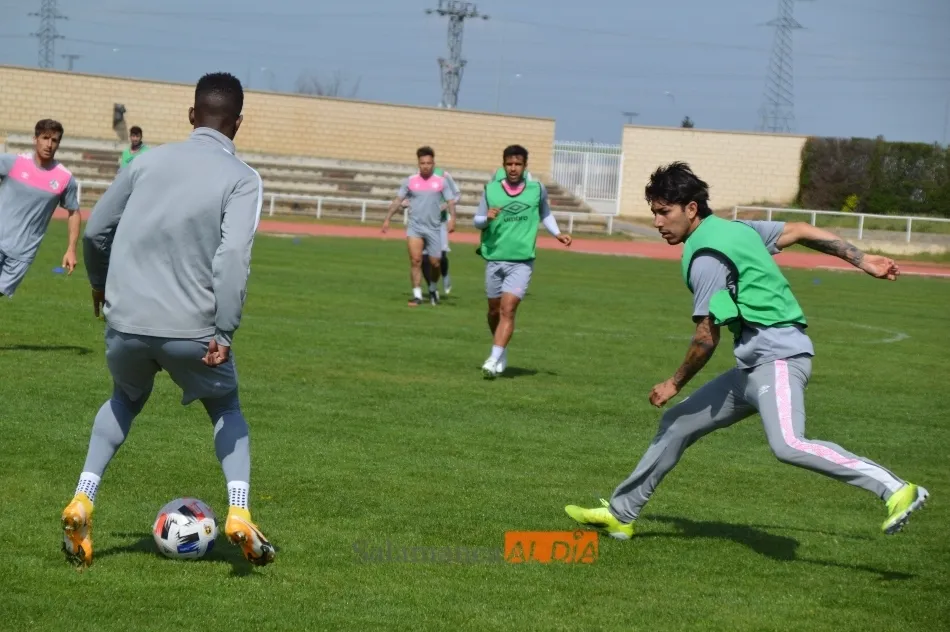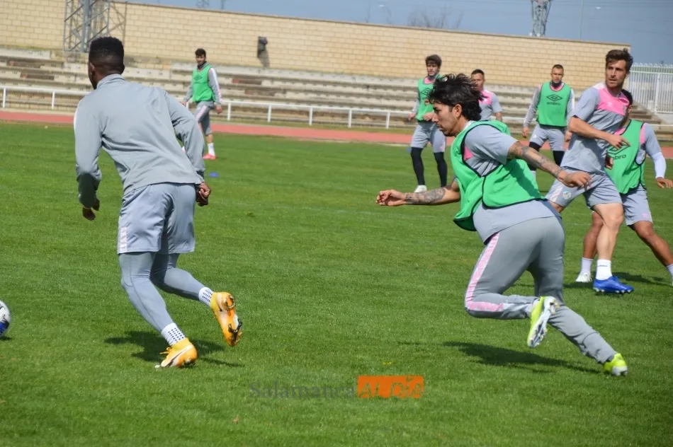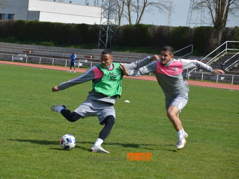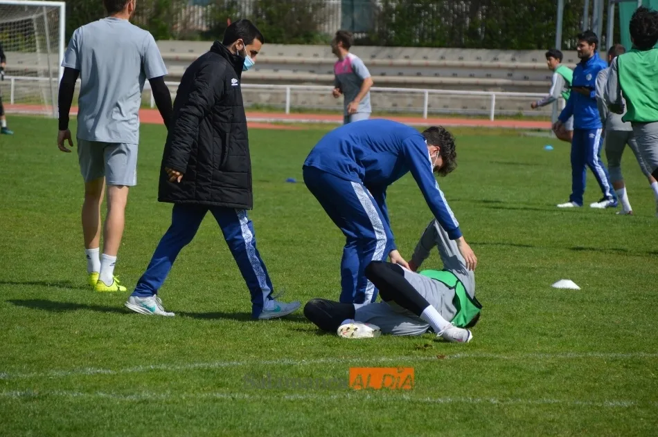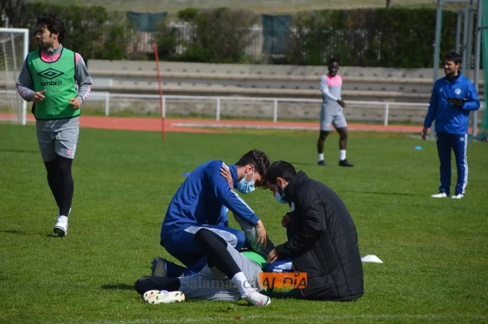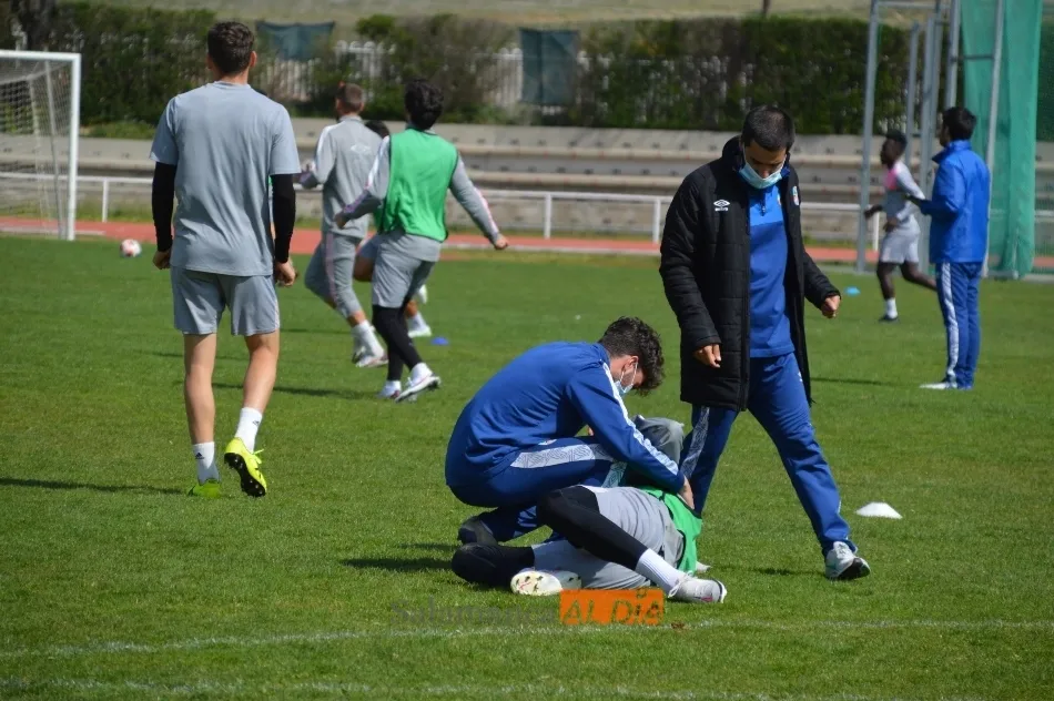 Lolo Escobar probó con Javi Navas y Juancho como ?9?, mientras que el Puma dio el susto en el entrenamiento del Salamanca UDS en la mañana de este jueves. Los dos extremos trabajaron como delanteros -dejaron buenas sensaciones- de cara a la visita al filial del Oviedo tras las bajas de Uxío y el mexicano, que se hizo daño en el hombro en una caída, aunque pudo continuar con dolor tras ser atendido por Miguel y Manolín, ambos miembros del cuerpo técnico. Por su parte, Delorenzi también necesitó asistencia médica por un golpe que no tuvo mayores consecuencias.
