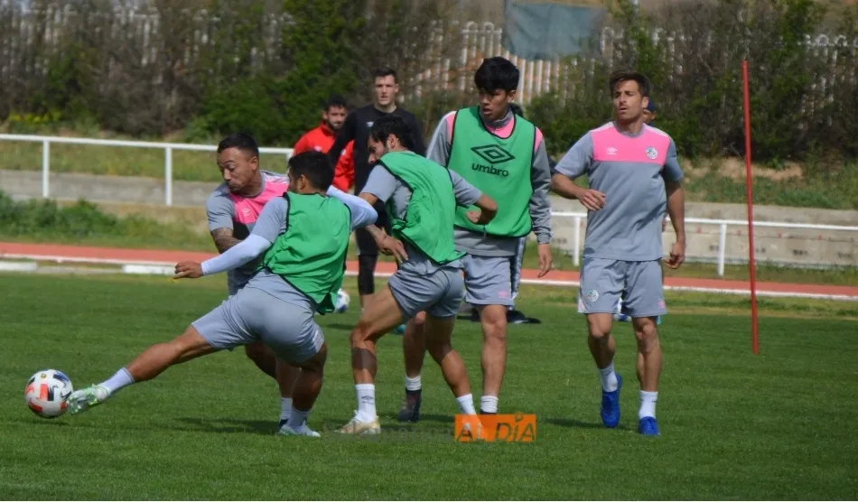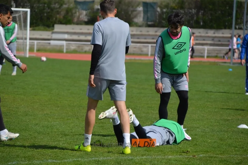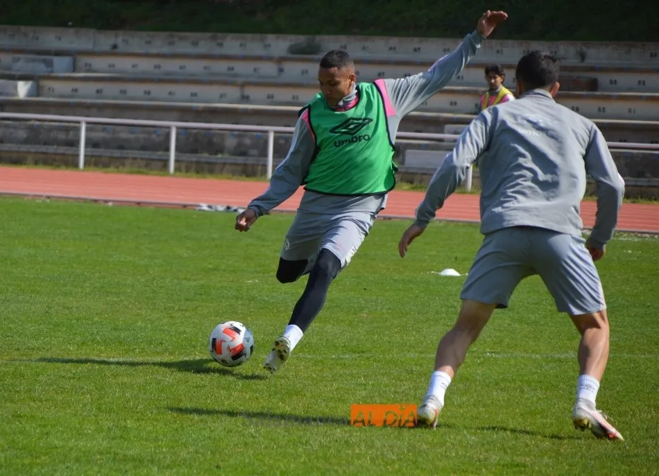 Los dos extremos trabajaron como delanteros de cara a la visita al filial del Oviedo tras las bajas de Uxío y el mexicano, que se hizo daño en el hombro en una caída