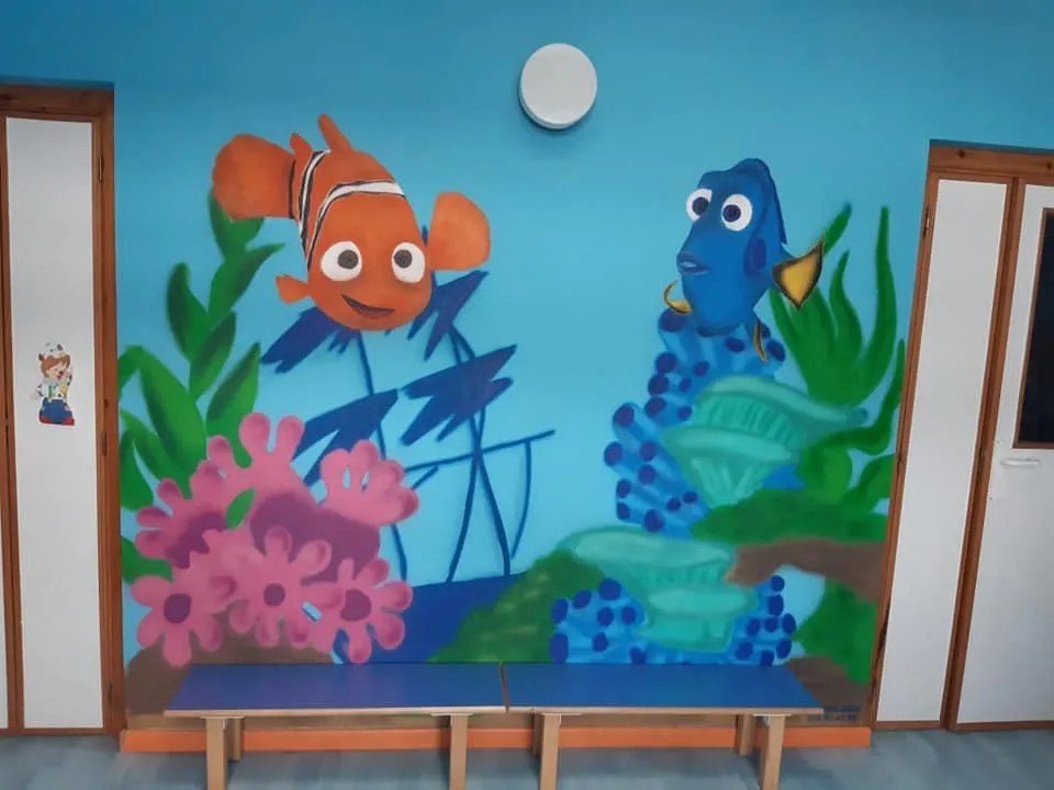 La guardería cuenta con una nueva decoración divertida inspirada en el fondo del mar, gracias al trabajo de Kikeartmd.