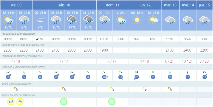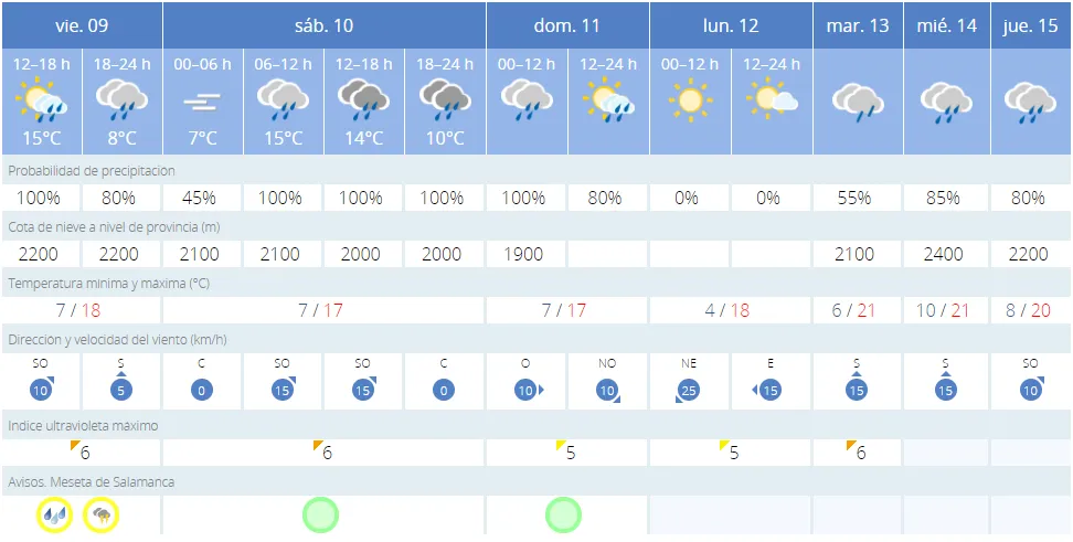 Las previsiones meteorológicas anuncian lluvia para todos los próximos días salvo para la jornada en que la que ?agua? está en el nombre