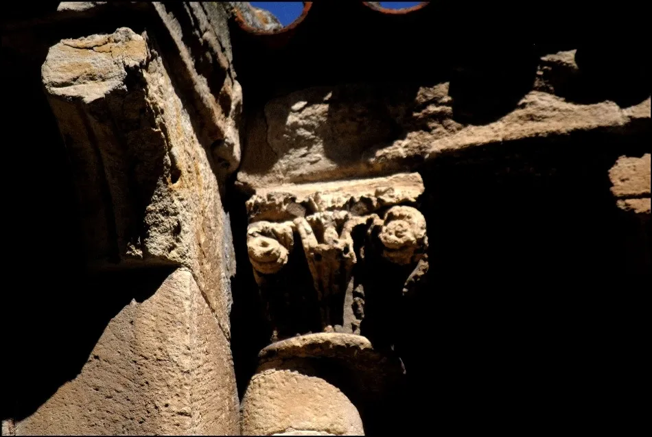 Tienen las columnas olvidadas una glácil cualidad hacia lo alto, se elevan con la belleza fervorosa del constructor medieval de obra prima que sabía hacer encajes con el cincel de su bordado. De ahí que la entrada de la iglesia diminuta sea puntilla delicada frente al sillar donde alguien arañó el recuerdo del predicador tronante?
