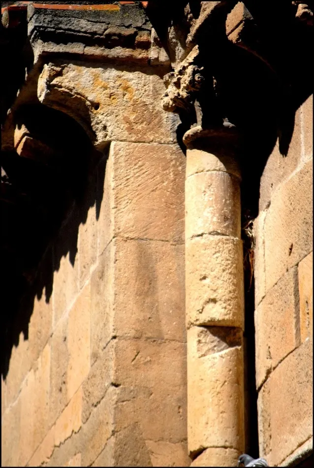 Cuántas veces en nuestro paso presuroso dejamos a un lado las diminutas naves del pasado, el exquisito, humilde románico salmantino. San Juan y sus sillares acariciados por la luz, piedra dorada, una iglesita construida en 1150 por los Caballeros de la Orden Hospitalaria de San Juan Bautista, y es el eco perdido de Jerusalén, la fundación casi legendaria, la que mantiene en pie esta joya en parte sustraída a nuestros ojos por estar oculta su puerta de entrada y apartado su ábside. Qué profunda belleza soterrada en esas ventanas saeteras abocinadas que guardan el secreto del arco doblado de medio punto, tan exquisito como el acanto espinoso que decora sus capiteles. Ni siquiera la erosión de la arenisca puede con la belleza sencilla, contundente, de un románico que siempre sorprende, sobrio y sometido al ejercicio demoledor de la intemperie?. Plena de detalles está esta iglesia pequeña en la que apenas reparamos, sentados en las legendarias terrazas de los locales salmantinos de tantos años, tantas cañas, tantos platos de patatas bravas al abrigo de la gente que abarrota bar y plaza ¿Cómo no recorrer las figuras grotescas que se mantienen en lo alto, mirándonos con sorna mientras permanecemos sentados, ajenos a su burla de piedra? ¿Cómo no reparar en el insigne decorado, muro privilegiado de nuestras conversaciones?