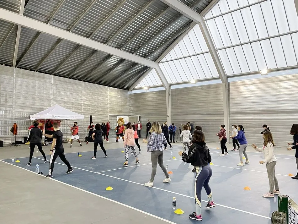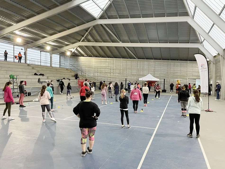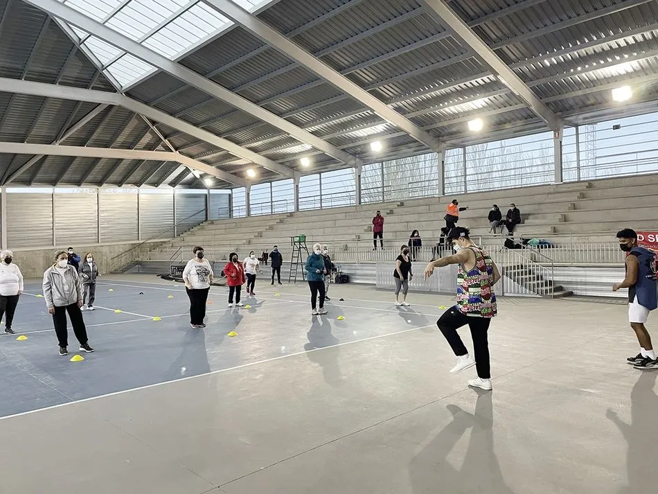 La lluvia no ha sido impedimento para bailar al ritmo de zumba. Vecinos de todas las edades han participado esta tarde en las actividades del programa Carbajosa Move On con las que el Ayuntamiento de Carbajosa de la Sagrada quiere fomentar la práctica deportiva en la calle también en unos momentos donde más que nunca es importante mantener vivo el ánimo. Las actividades de gimnasia para mayores y zumba estaba previsto que se celebraran en el recinto ferial pero debido a la lluvia se han trasladado a la pista de tenis cubierta. Mañana se celebrarán actividades de fútbol senior femenino; disparos a porterías de faltas y de penalistas (para niños nacidos entre 2009 y 2014).