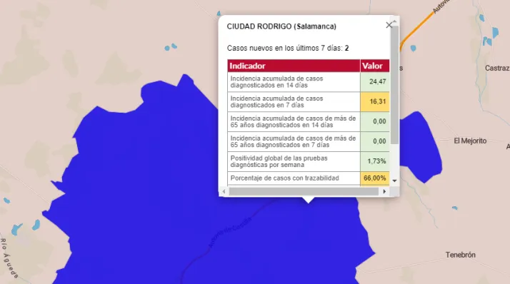 Como se puede ver en la tabla inferior, la localidad de La Fuente de San Esteban sí supera ampliamente esa cifra (tiene una incidencia a 14 días de 622 casos por cada 100.000 habitantes), pero hay que recordar que la regla sólo es automáticamente aplicable a los municipios de más de 5.000 habitantes como Ciudad Rodrigo, quedando a discreción de la Junta lo que ocurra en las localidades de menor población.