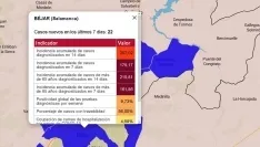 Algunos de los datos corresponden a la zona básica de salud de Béjar, no así las cifras de acumulados, que corresponden al municipio. Los datos de número de afectados y el porcentaje de ellos en proporción al número de tarjetas sanitarias, son facilitados oficialmente por la Junta de Castilla y León (enlace a los datos oficiales de la Junta de Castilla y León)