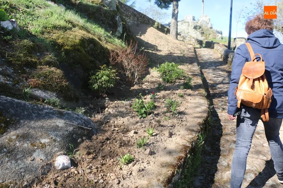 Lourdes Borgas, responsable de la oficina municipal de Turismo, ha creado un bello rincón en la zona del Castillo con plantas donadas, en su mayoría, por las vecinas de la localidad