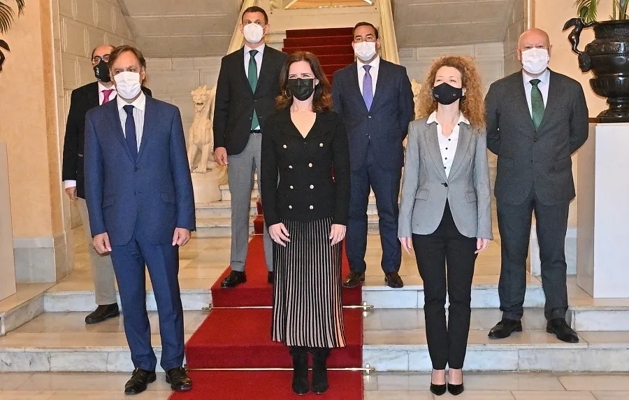 El alcalde de Salamanca, Carlos García Carbayo, acompañado por la primera teniente de alcalde y concejala de Familia e Igualdad de Oportunidades, Ana Suárez, y los concejales de Hacienda, Contratación y Régimen Interior, Fernando Rodríguez, y de Promoción Económica, Comercio y Mercados, Juan José Sánchez, ha recibido hoy en el Ayuntamiento a la consejera de Empleo e Industria, Ana Carlota Amigo.