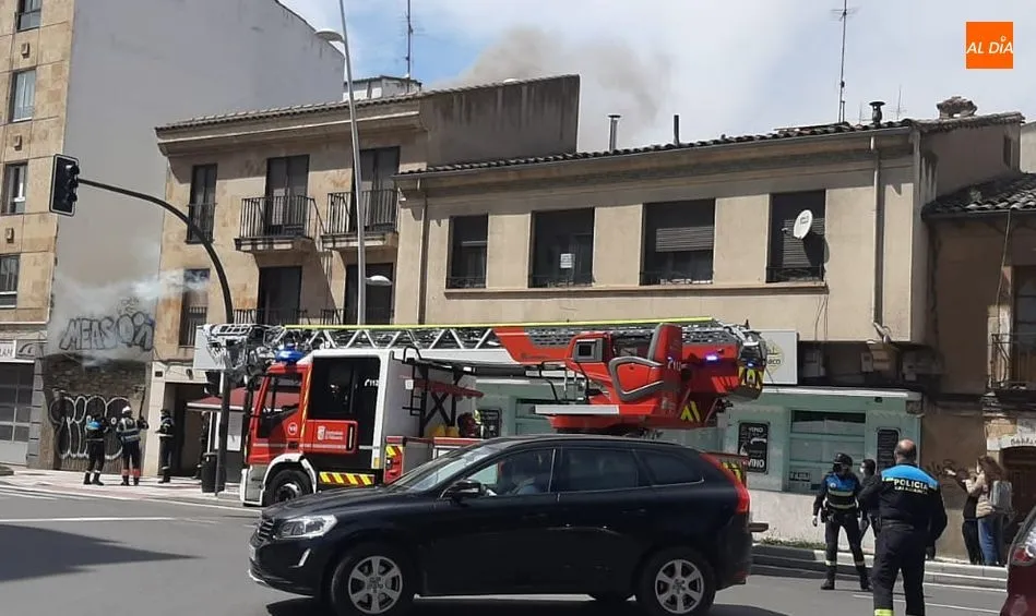 Por ello, dos dotaciones de los Bomberos acudían al lugar, aunque antes de que llegasen, según relataba una testigo a SALAMANCA AL DÍA, dos agentes de la Policía Local entraban en el bloque indicado con extintores.