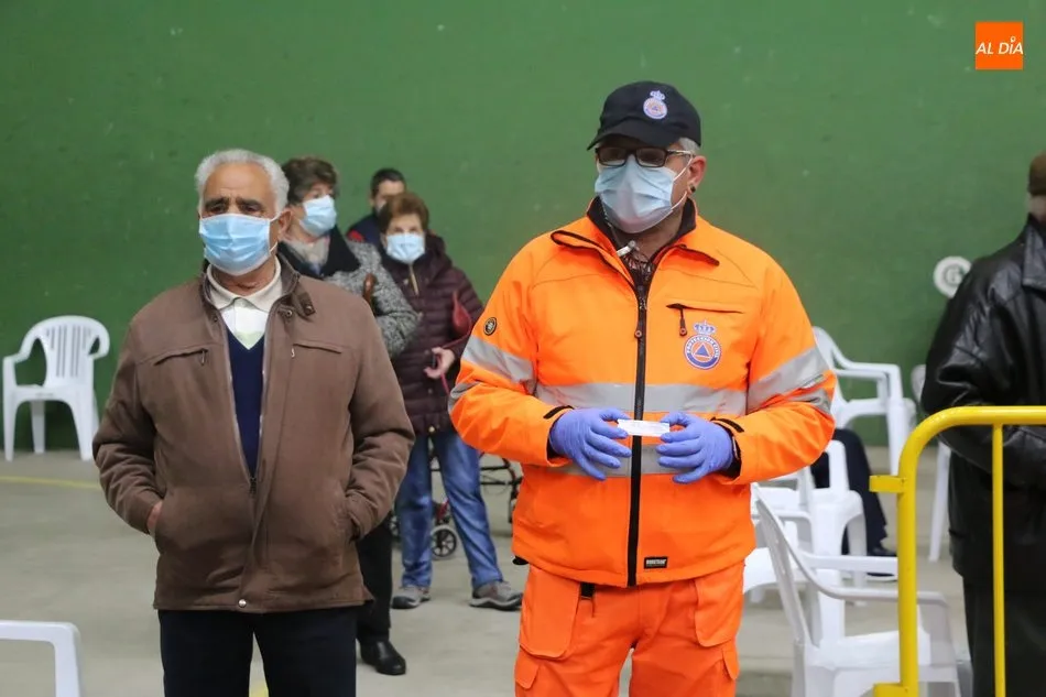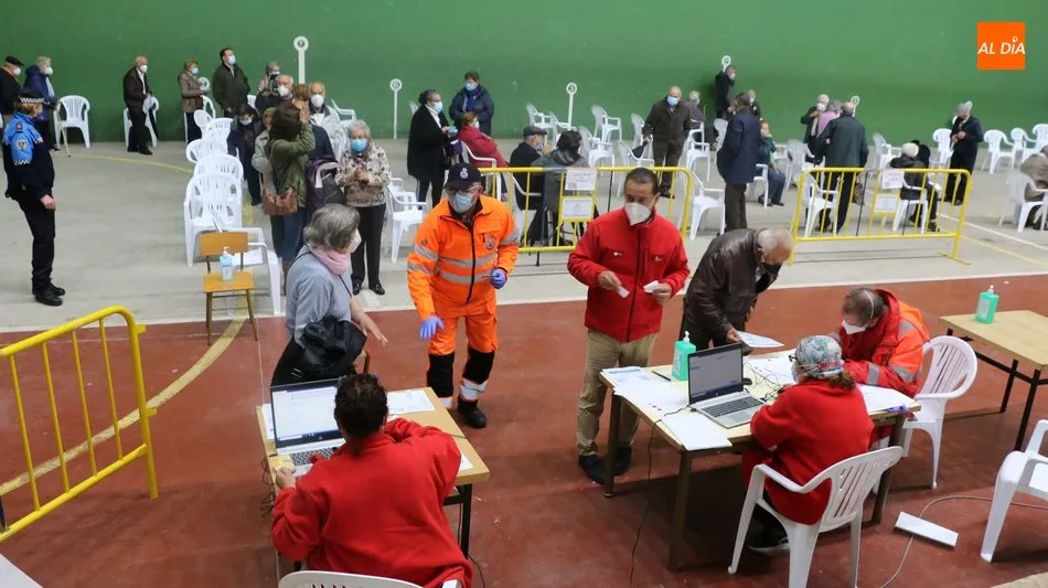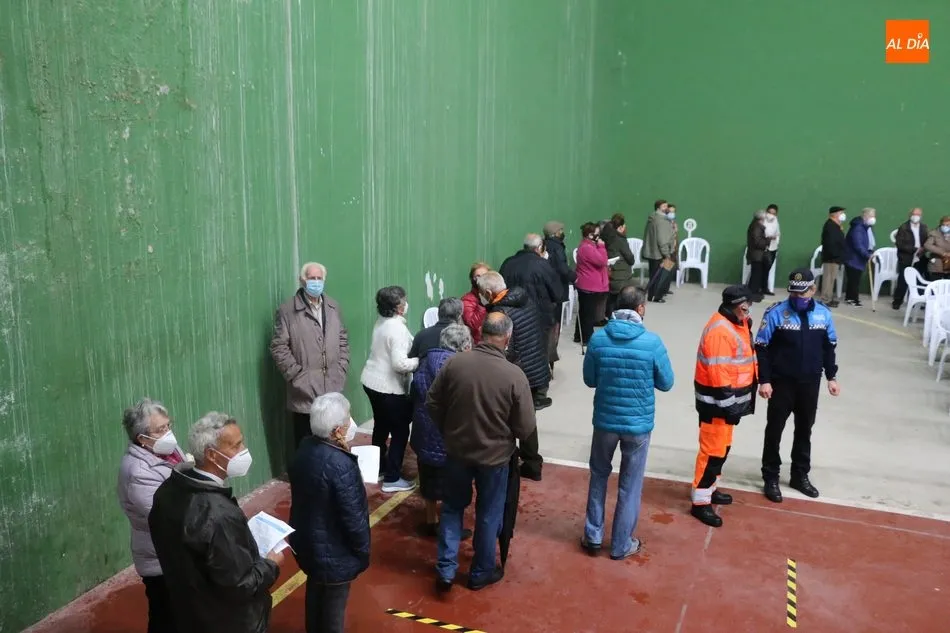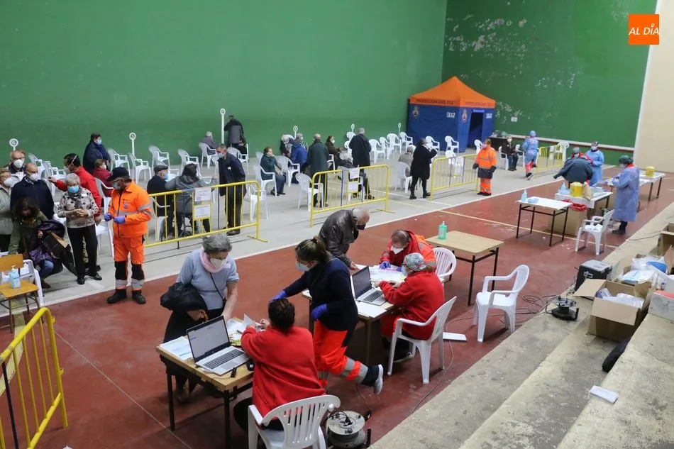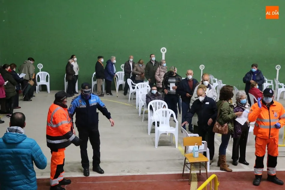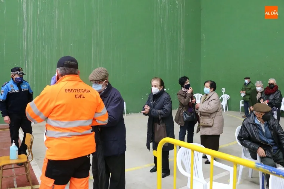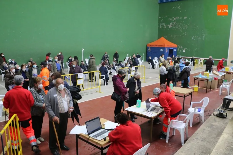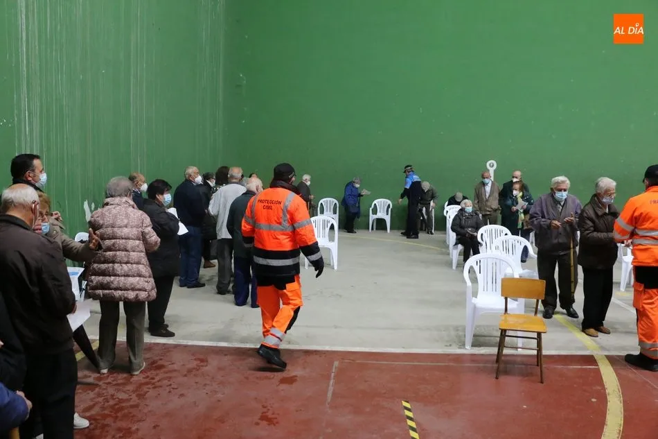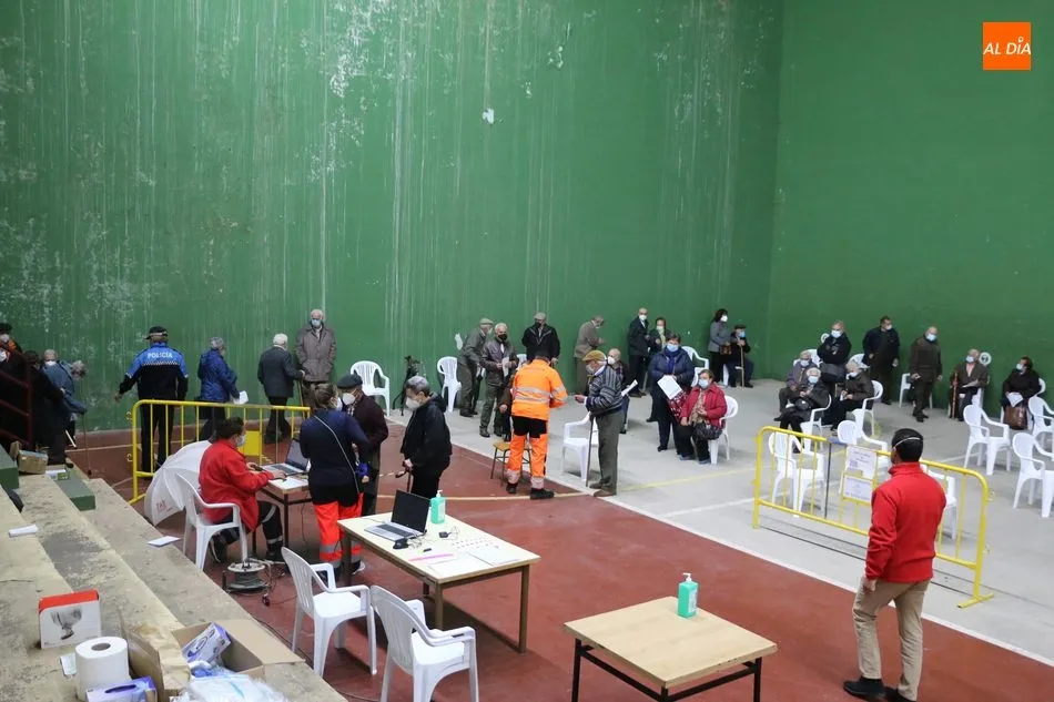 El inicio de la administración de la vacuna Pfizer comenzaba a las 11.00 horas con los nacidos en el año 1935 y con tres líneas de vacunación, lo que evitó aglomeraciones. Debido a la lluvia, la cola se formaba ordenadamente en el interior del frontón para evitar que los vacunados se mojasen, un trabajo que corría a cargo de los voluntarios de Protección Civil de Vitigudino y del agente de Policía Local, que iban situando ordenadamente, por año de nacimiento, a los llamados a la vacunación.