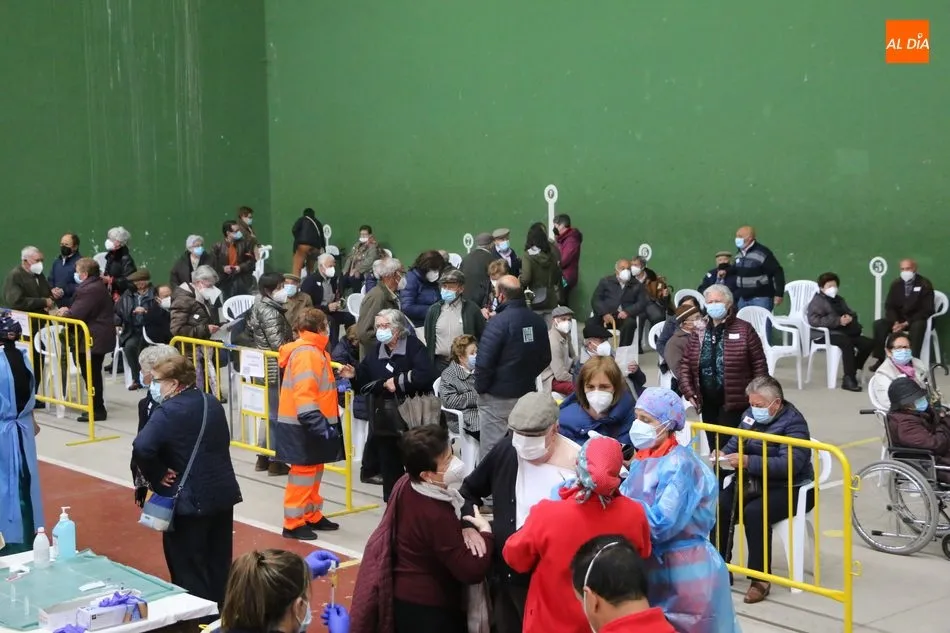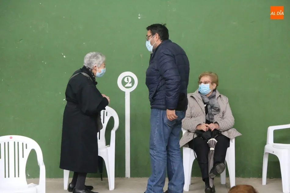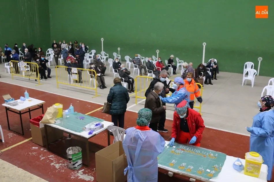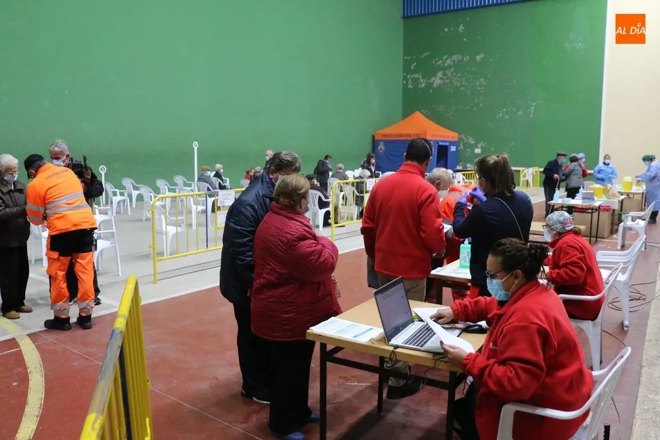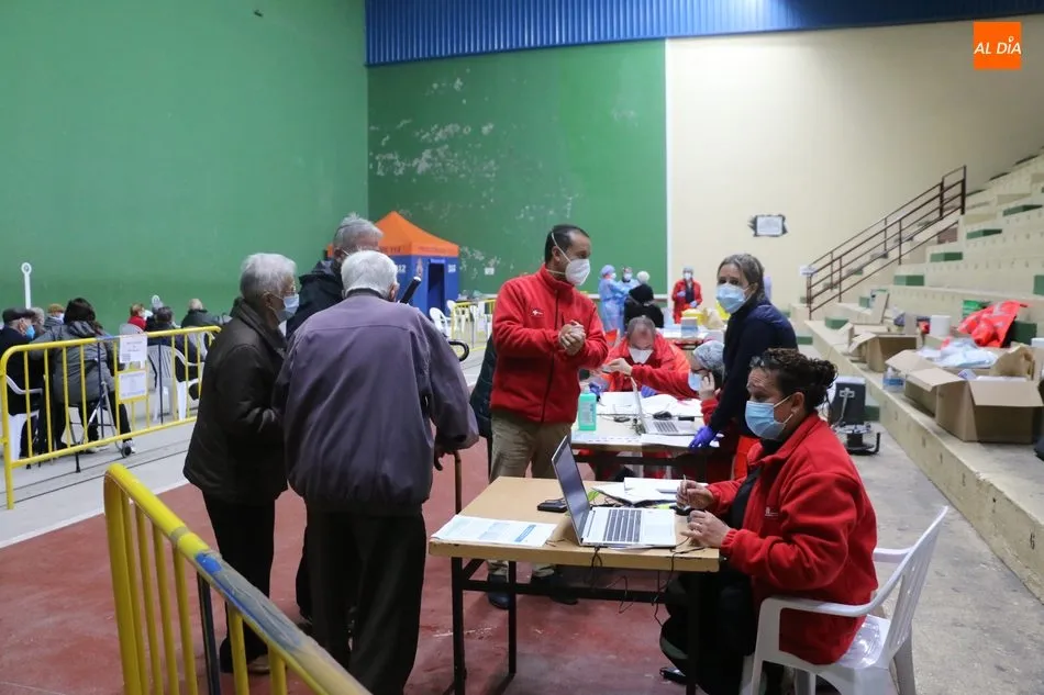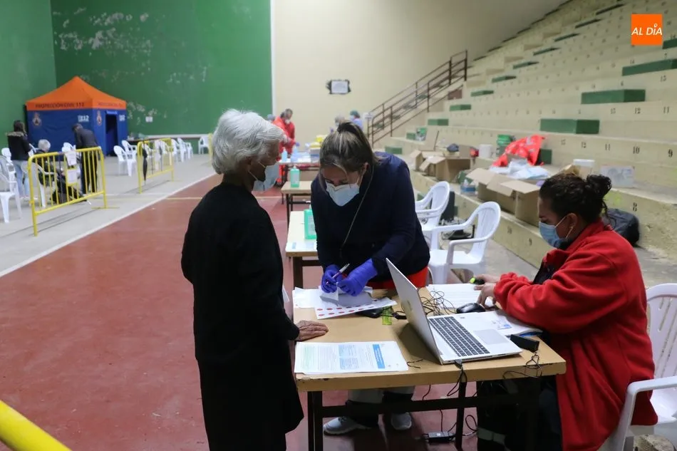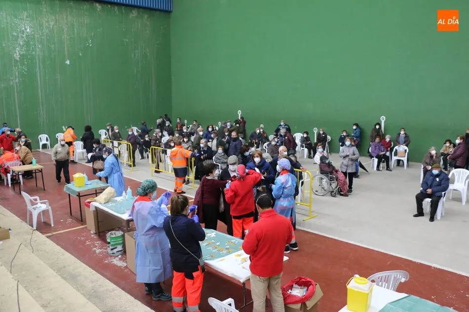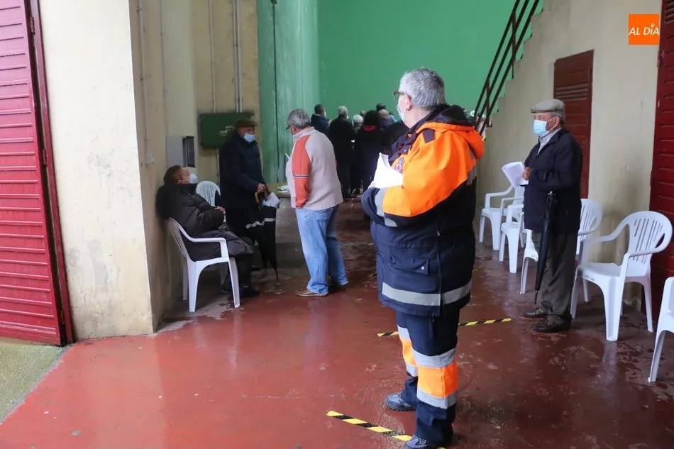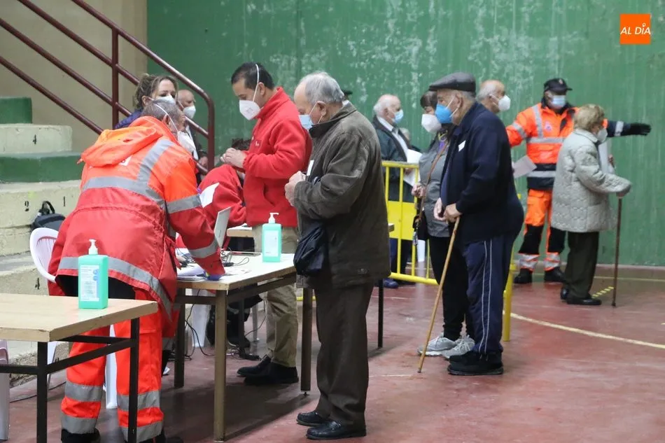 El inicio de la administración de la vacuna Pfizer comenzaba a las 11.00 horas con los nacidos en el año 1935 y con tres líneas de vacunación, lo que evitó aglomeraciones. Debido a la lluvia, la cola se formaba ordenadamente en el interior del frontón para evitar que los vacunados se mojasen, un trabajo que corría a cargo de los voluntarios de Protección Civil de Vitigudino y del agente de Policía Local, que iban situando ordenadamente, por año de nacimiento, a los llamados a la vacunación.
