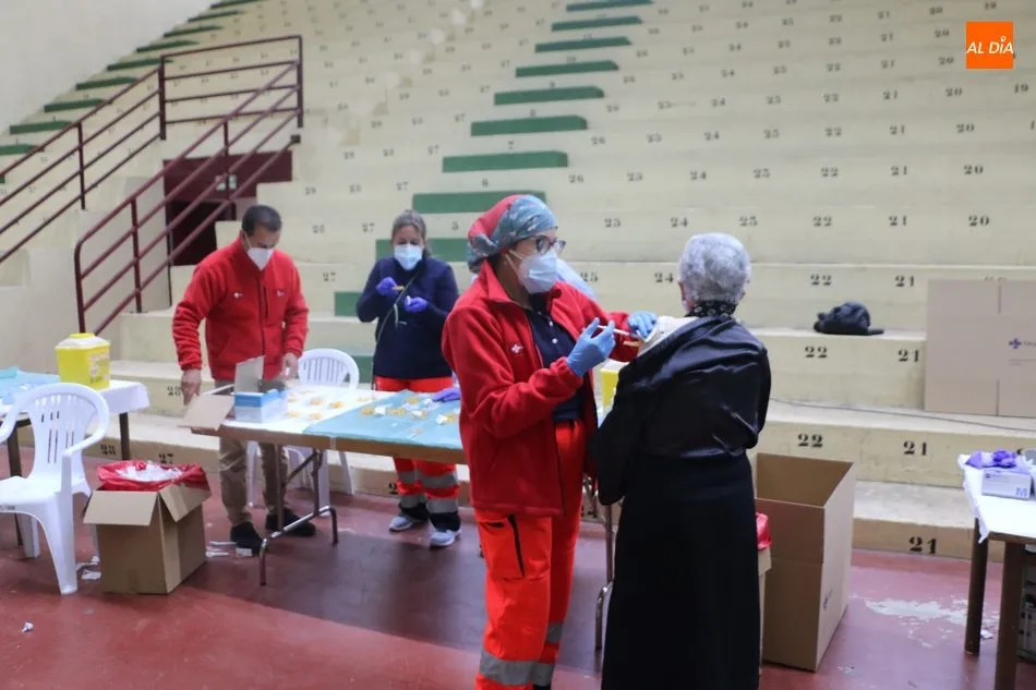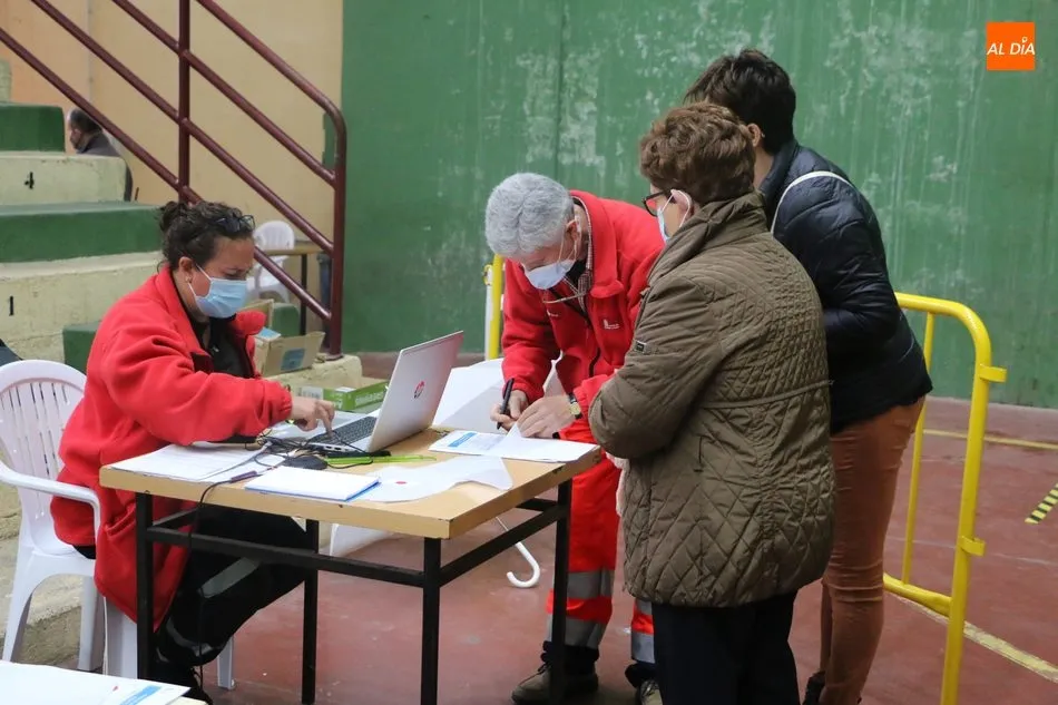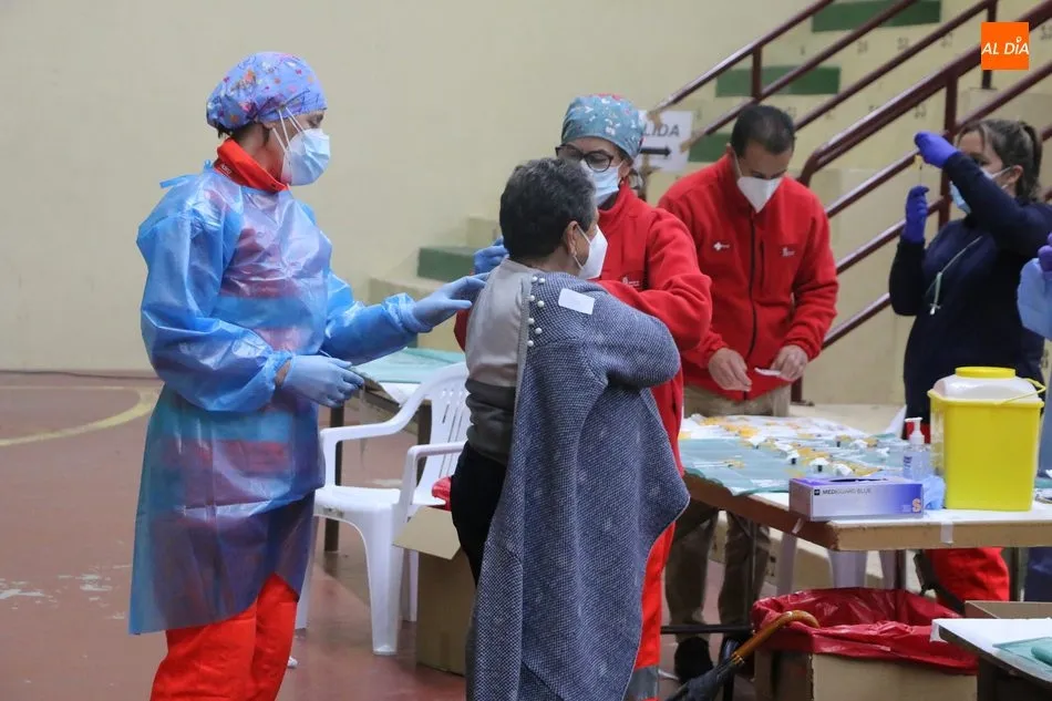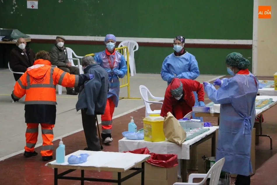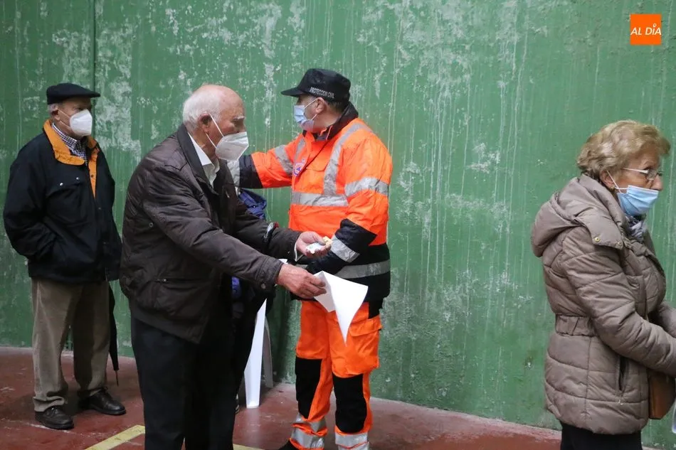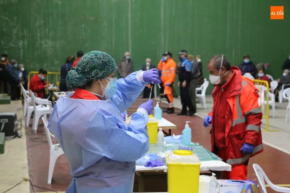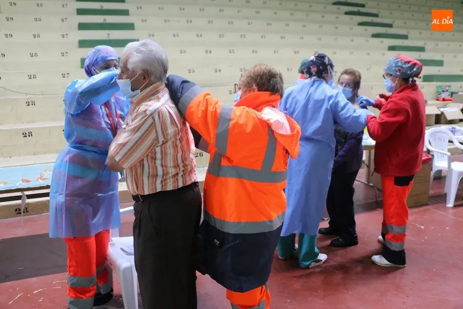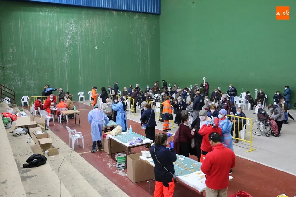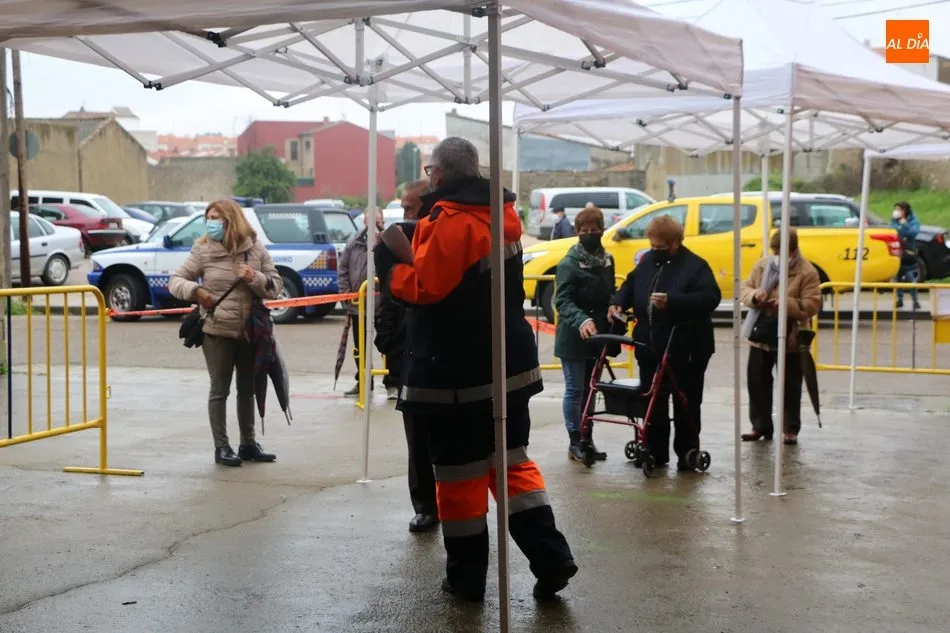 El inicio de la administración de la vacuna Pfizer comenzaba a las 11.00 horas con los nacidos en el año 1935 y con tres líneas de vacunación, lo que evitó aglomeraciones. Debido a la lluvia, la cola se formaba ordenadamente en el interior del frontón para evitar que los vacunados se mojasen, un trabajo que corría a cargo de los voluntarios de Protección Civil de Vitigudino y del agente de Policía Local, que iban situando ordenadamente, por año de nacimiento, a los llamados a la vacunación.