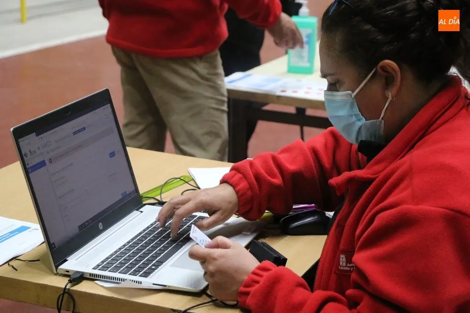Se formaban tres líneas de vacunación con cola ordenada por año de nacimiento en el interior del edificio, lo que agilizó el proceso
