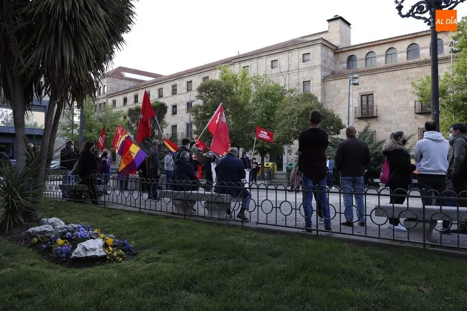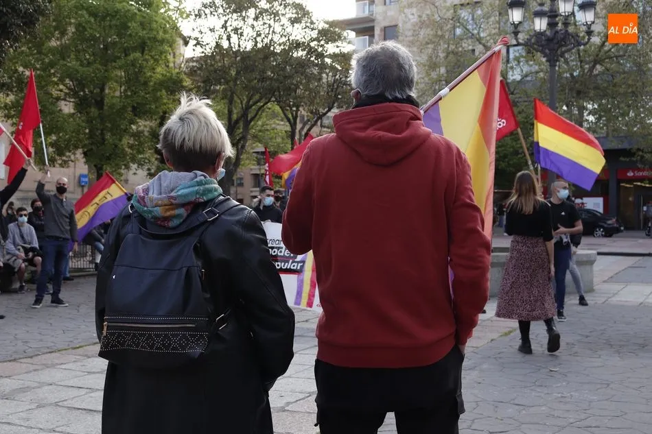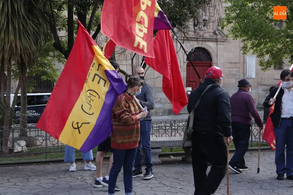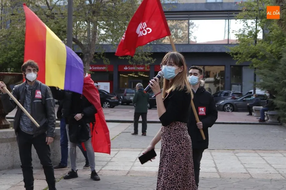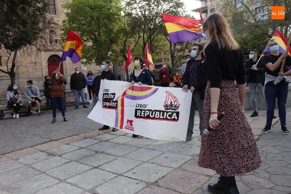 La plaza de Los Bandos de Salamanca ha acogido este martes, la concentración convocada por Juventud Comunista con motivo de la conmemoración del 14 de abril, fecha para rememorar la proclamación de la Segunda República española el 14 de abril de 1931. Bajo el lema ?Crear poder popular, crear República?, el acto en el que también se ha reivindicado la tercera República, se ha celebrado siguendo todas las medidas de seguridad.