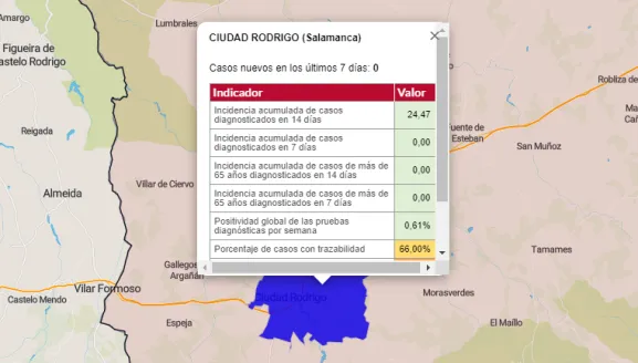 El mejor ejemplo se da en la Zona Básica de Salud de Ciudad Rodrigo, que este miércoles suma un nuevo positivo por PCR (el primero en 7 días y el tercero en 14 días), pero al mismo tiempo ninguno de los municipios que lo integran reflejan nuevos positivos, e incluso cumple la semana de antigüedad el último positivo detectado en el municipio de Ciudad Rodrigo. Al no haberse registrado positivos en la última semana, su incidencia acumulada semanal baja a ?0?.