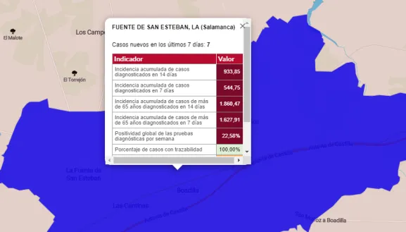 En lo que respecta a La Fuente de San Esteban, ha registrado dos nuevos casos en las últimas horas, ya que, aunque la incidencia acumulada semanal no varía (sigue como el día anterior en 544,75 casos por cada 100.000 habitantes al ir cumpliendo la semana de antigüedad otros positivos), sí lo hace la incidencia quincenal. En concreto, este dato se sitúa este jueves en 933,85 casos por cada 100.000 habitantes, lo que equivale en números absolutos a 12 casos en las últimas 2 semanas (el miércoles se contabilizaban 10).