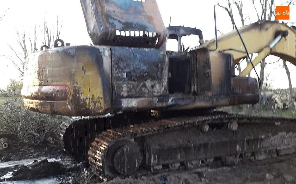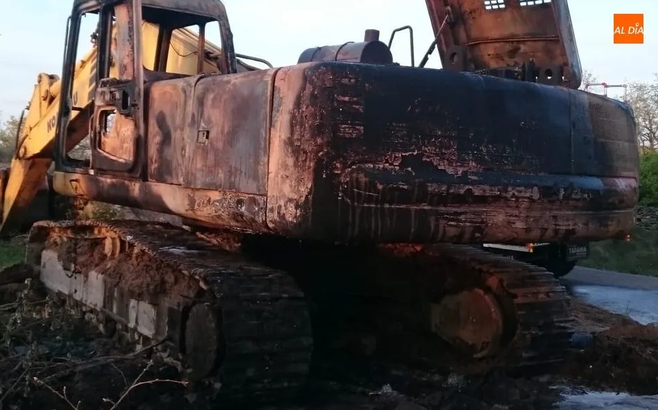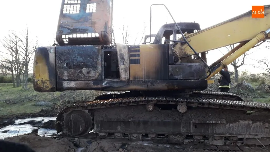 Los bomberos de Vitigudino sofocan el incendio de una máquina excavadora en La Vídola