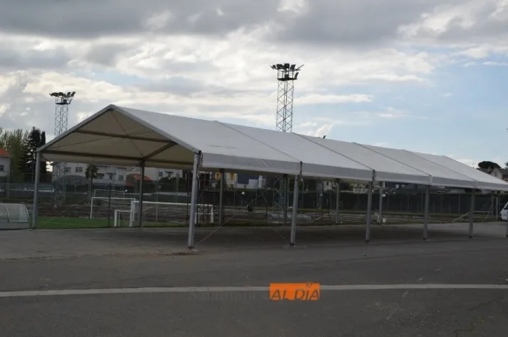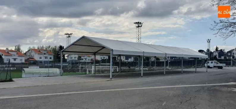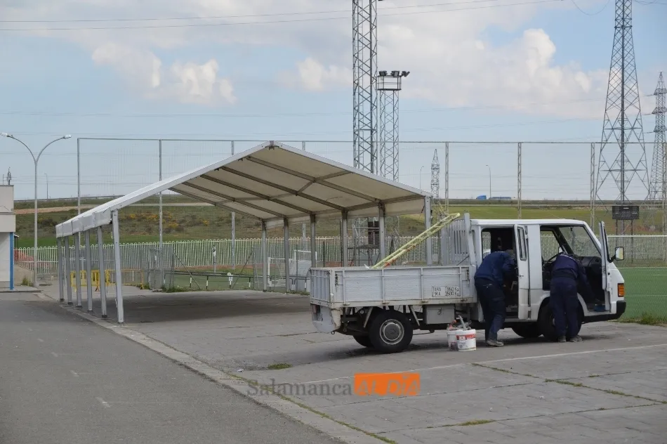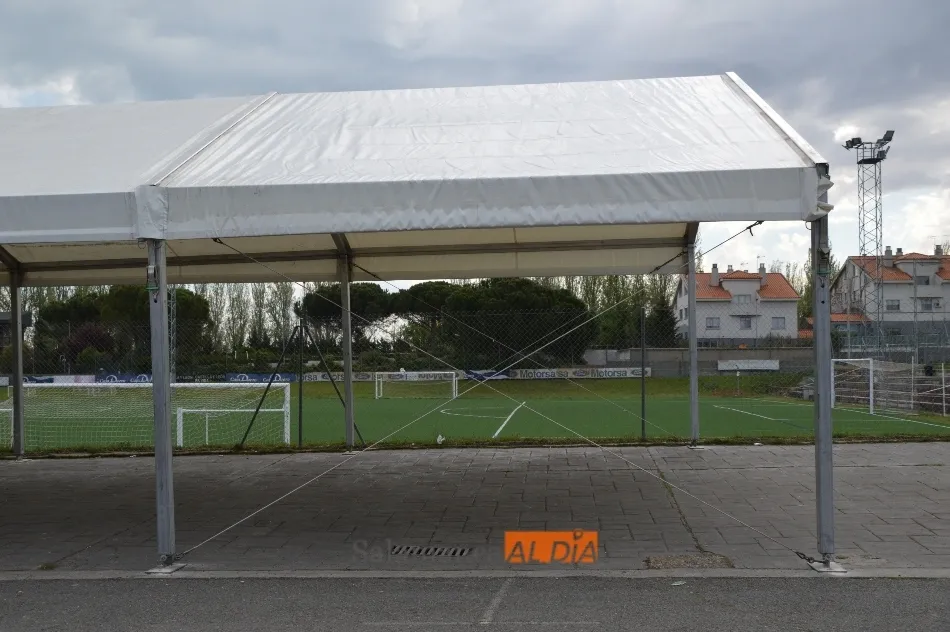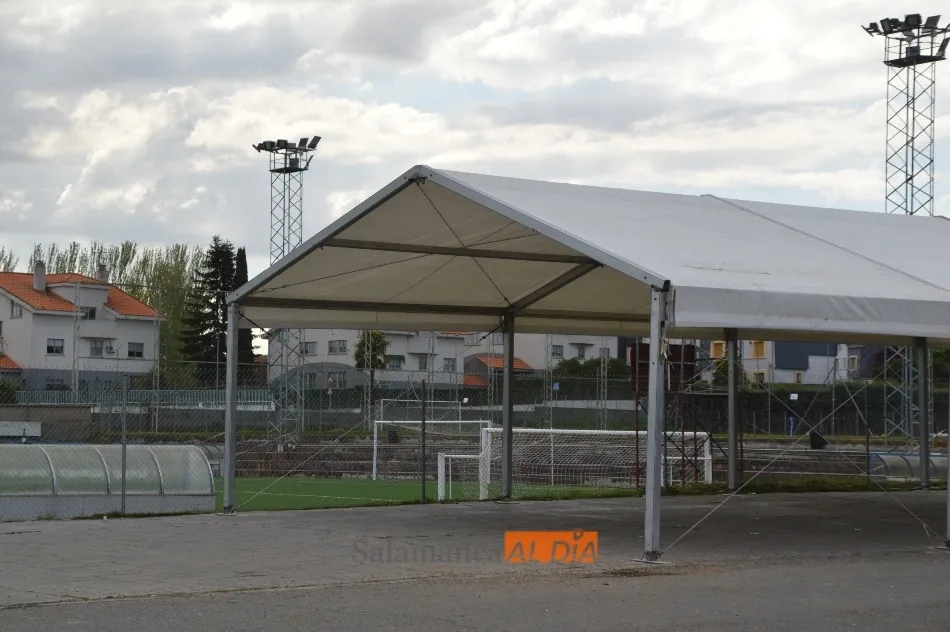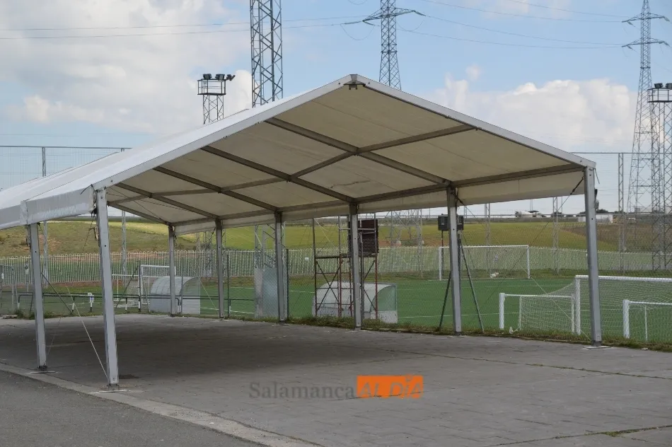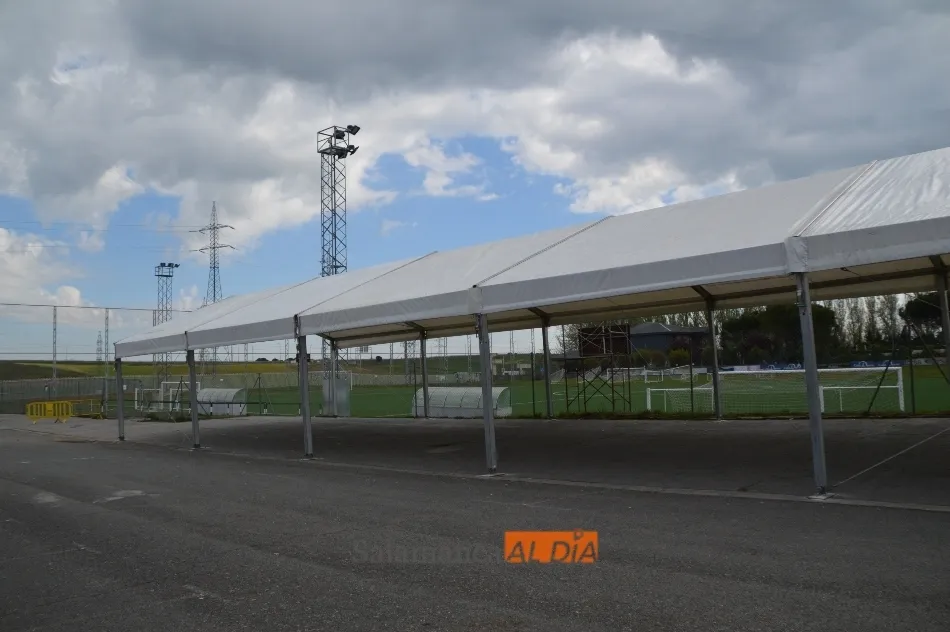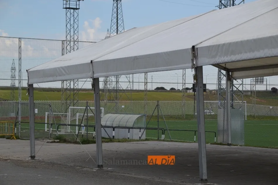 El Salamanca UDS instaló una carpa para los aficionados que acudan a los partidos de la cantera en el Tori. Su levantamiento tuvo lugar a primera hora de la mañana de este viernes 16 de abril, y permitirá que los familiares de los más pequeños puedan disfrutar del fútbol en los días de lluvia sin tener que mojarse. Además, la nueva pieza de la que dispone el club cumple con la normativa COVID-19 en materia de ventilación, según fuentes de la entidad, puesto que las paredes están descubiertas, aunque con el tiempo y la mejora de las restricciones podrían quedar tapadas si así se desea.