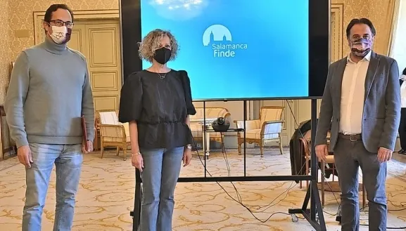 El concejal de Turismo y Relaciones con las Universidades, Fernando Castaño, acompañado de la vicerrectora de Estudiantes y Sostenibilidad de la Universidad de Salamanca, Celia Aramburu, y del presidente de la junta directiva de Alumni-USAL, José Luis Fuentecilla, han presentado hoy el proyecto ?Salamanca Finde?. Se trata de una iniciativa enmarcada dentro de la colaboración entre la sociedad Turismo de Salamanca y Alumni, para la promoción conjunta de Salamanca y la Universidad.