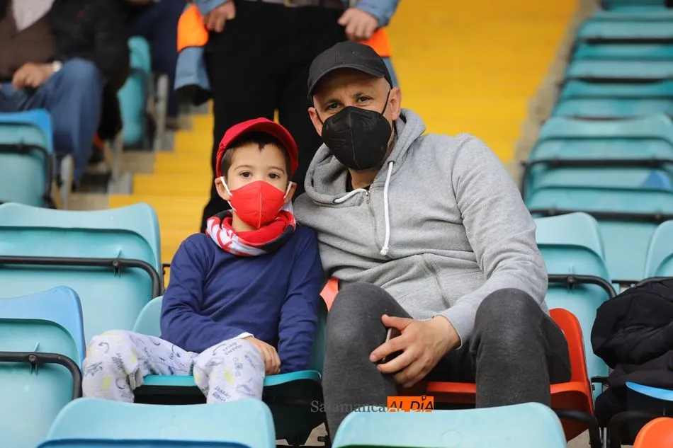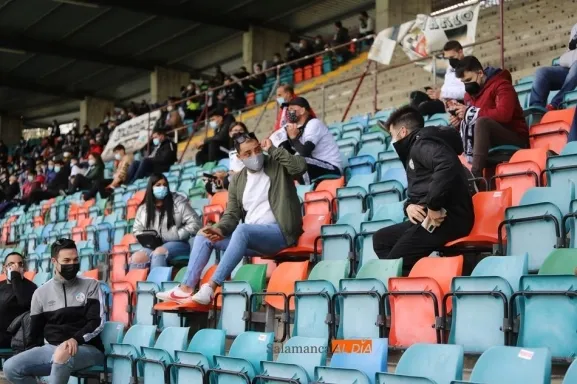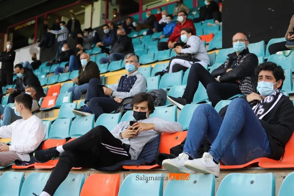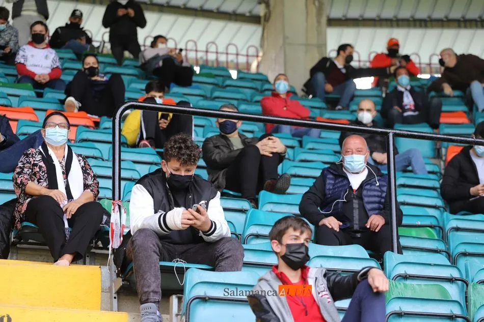Un buen número de aficionados del conjunto charro acudió al ?templo? para dar calor a los futbolistas dirigidos por Lolo Escobar en el duelo contra los asturianos