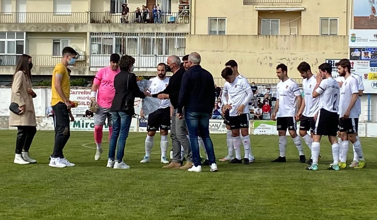 Por otro lado, la mujer y los tres hijos de Ricardo Sánchez accedieron al césped en el momento de la salida de los equipos al campo para recibir de manos de los jugadores del primer equipo del Ciudad Rodrigo CF y de la directiva del Club un ramo de flores y una camiseta del equipo dedicada. Por último, se guardó un respetuoso minuto de silencio en su memoria en el momento de arrancar el partido, en el cual los jugadores mirobrigenses lucieron una cinta negra en sus brazos en señal de duelo.