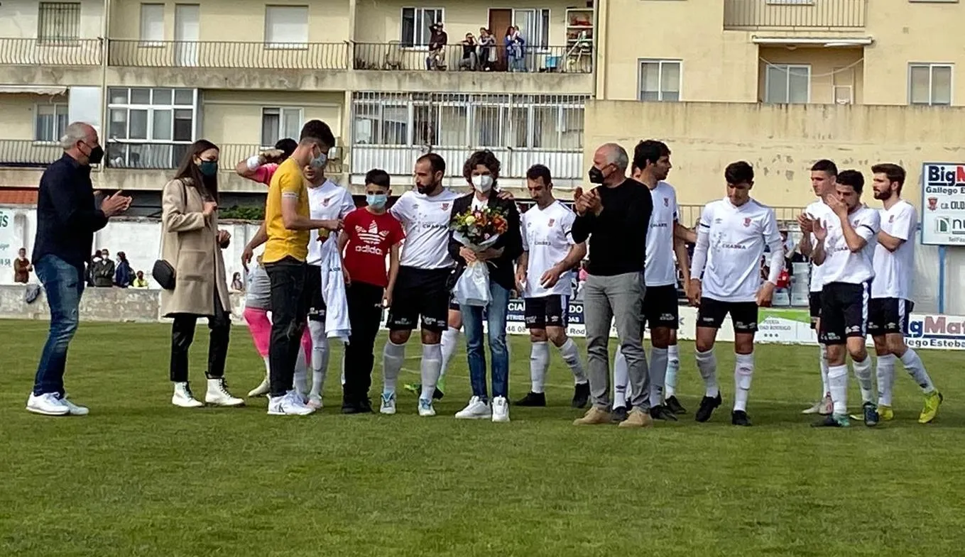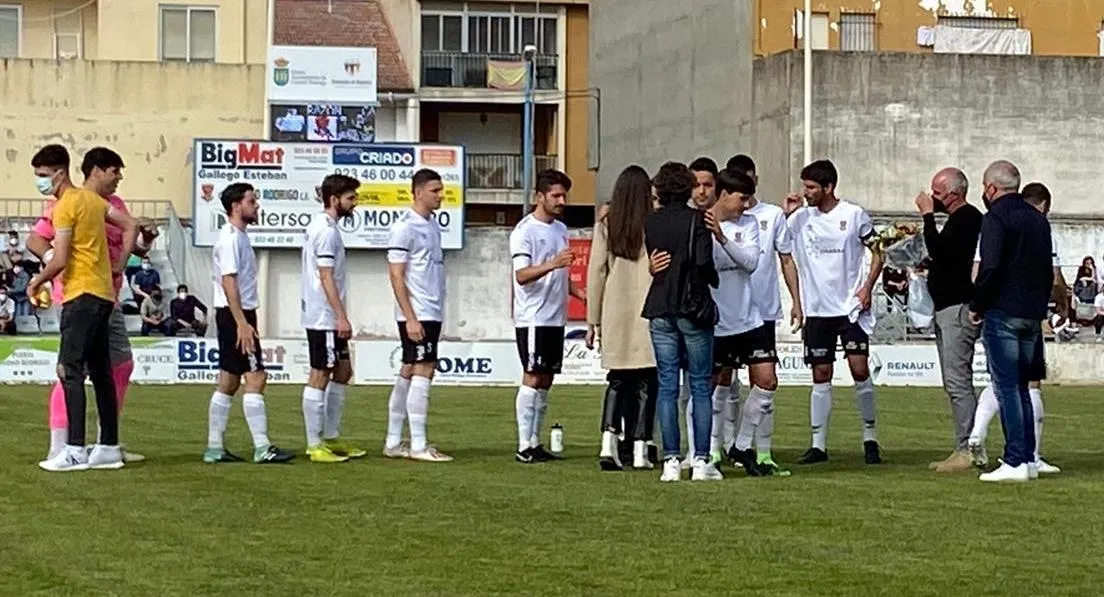 El encuentro del Senior del Ciudad Rodrigo en la tarde dominical en el Francisco Mateos frente al Real Salamanca Monterrey tuvo un emotivo prólogo: un homenaje a Ricardo Sánchez, el agente de la Guardia Civil fallecido el pasado Viernes Santo en un accidente de tráfico mientras se encontraba de servicio, que fue durante más de una década técnico de diversos equipos de la cantera del Club mirobrigense, consiguiendo varios logros (como los títulos de campeones provinciales en las categorías Prebenjamín y Benjamín).