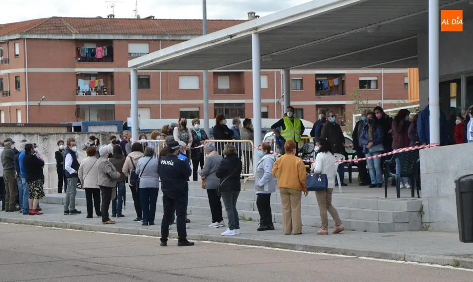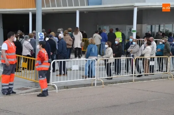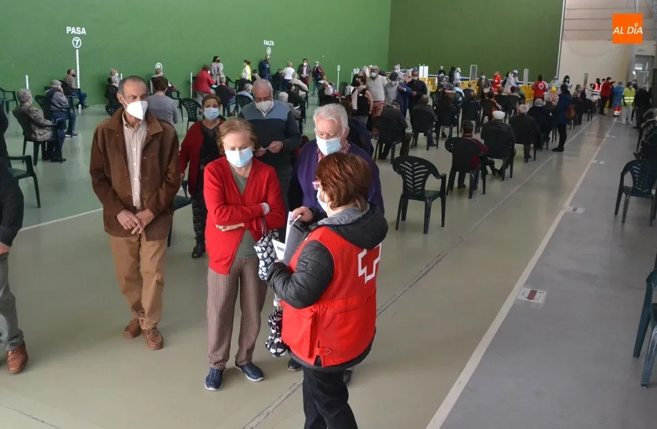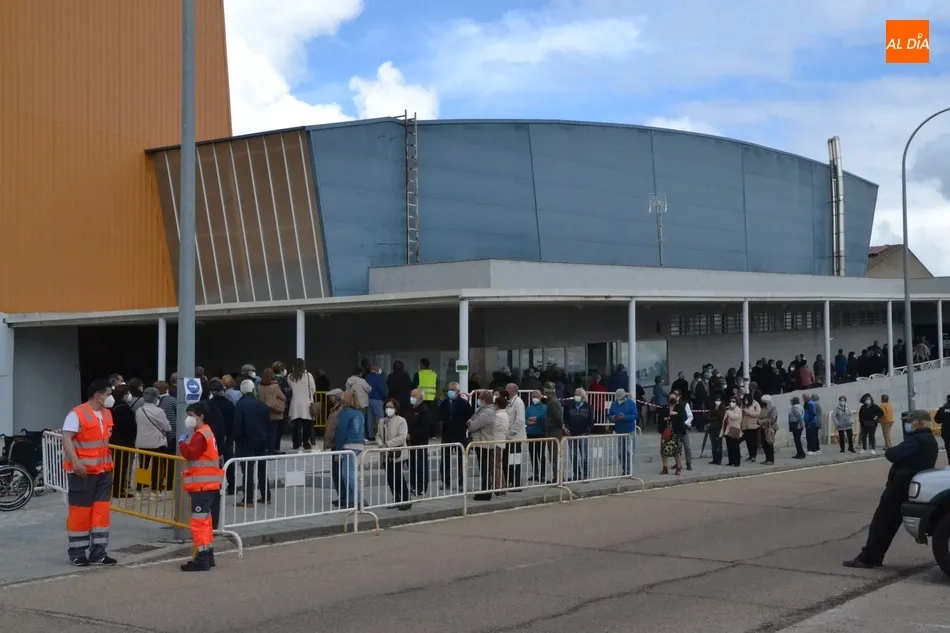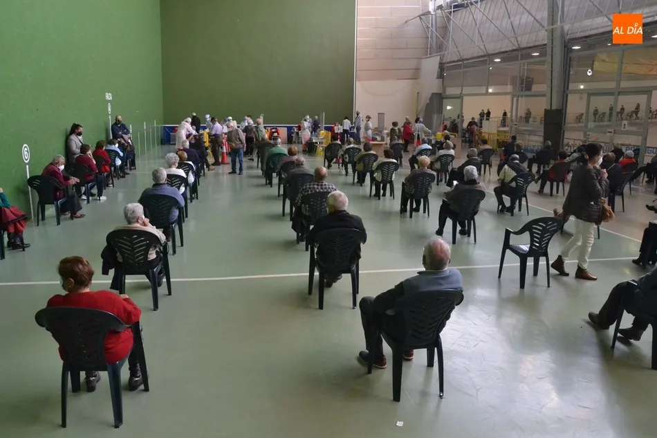 El alto volumen de personas convocadas hizo que en esta ocasión sí que fuera inevitable que al menos durante el tramo matinal se formase una larga cola, incluso a las puertas del Pabellón, aunque al menos iba avanzando con cierta fluidez en dirección al frontón, donde estaban funcionando hasta 4 líneas de vacunación. Una vez recibida la dosis de la vacuna de Pfizer, los ya vacunados debían esperar antes de poder marcharse un cuarto de hora en las sillas desplegadas por el frontón (por si tenían alguna reacción adversa).